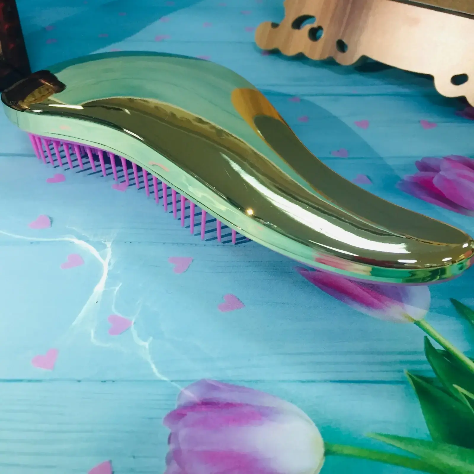 Почему стоит выбрать именно эту расческу? Во-первых, она выполнена из качественного пластика, что гарантирует долговечность и надежность. Во-вторых, ее компактные размеры позволяют легко помещать расческу в сумочку или косметичку, что делает ее идеальным аксессуаром для путешествий. В-третьих, стильный золотистый цвет и розовые зубчики добавляют нотку элегантности в ваш повседневный уход за волосами.