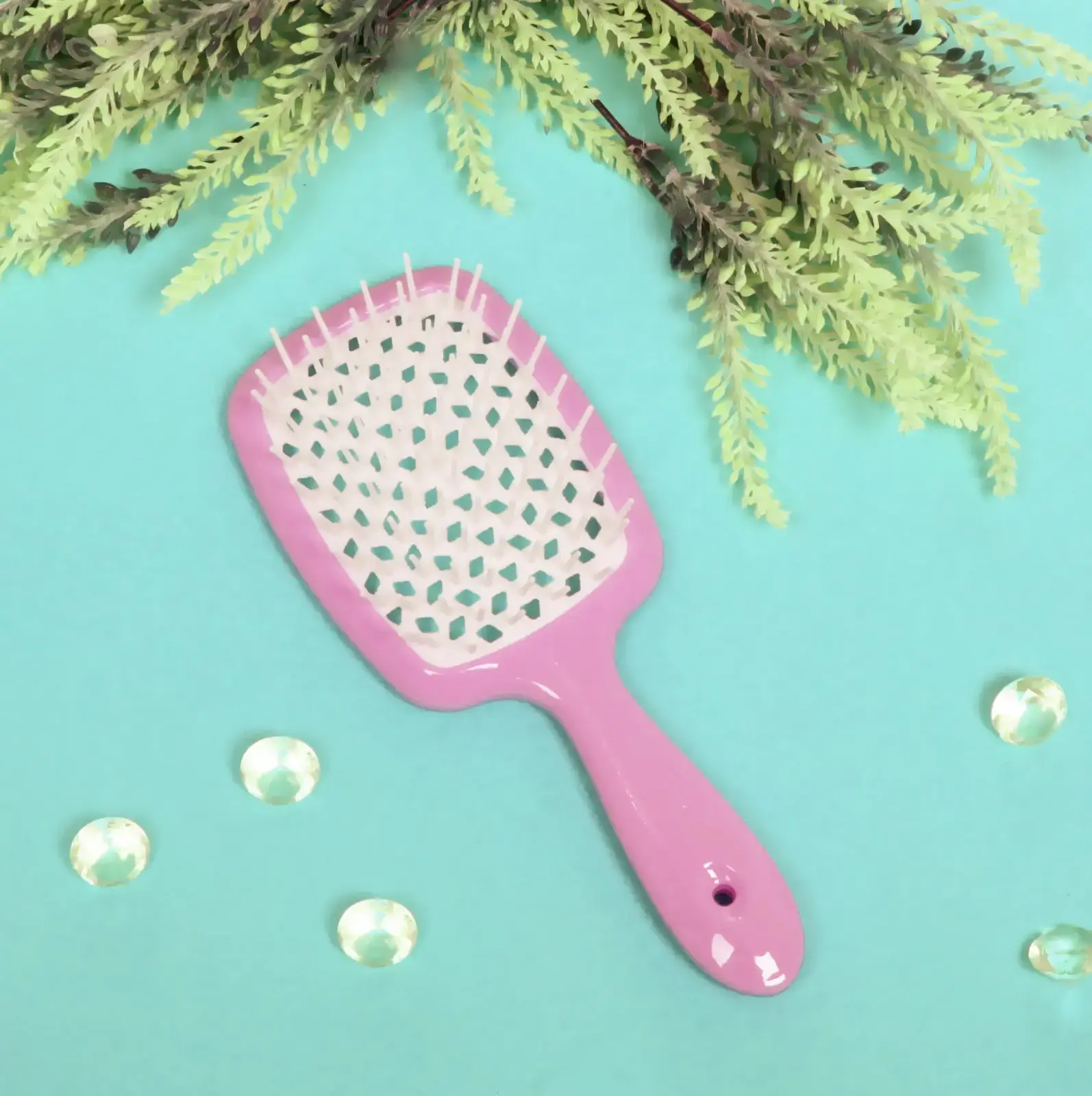 Эта массажная расческа подходит для всех типов волос и идеально справляется с запутанными, мокрыми и влажными волосами. Легкая и мягкая щетка с силиконовыми зубчиками позволяет аккуратно расчесывать волосы, не повреждая их структуру. Расческа также термостойкая, что делает её отличным выбором для укладки волос феном или плойкой.