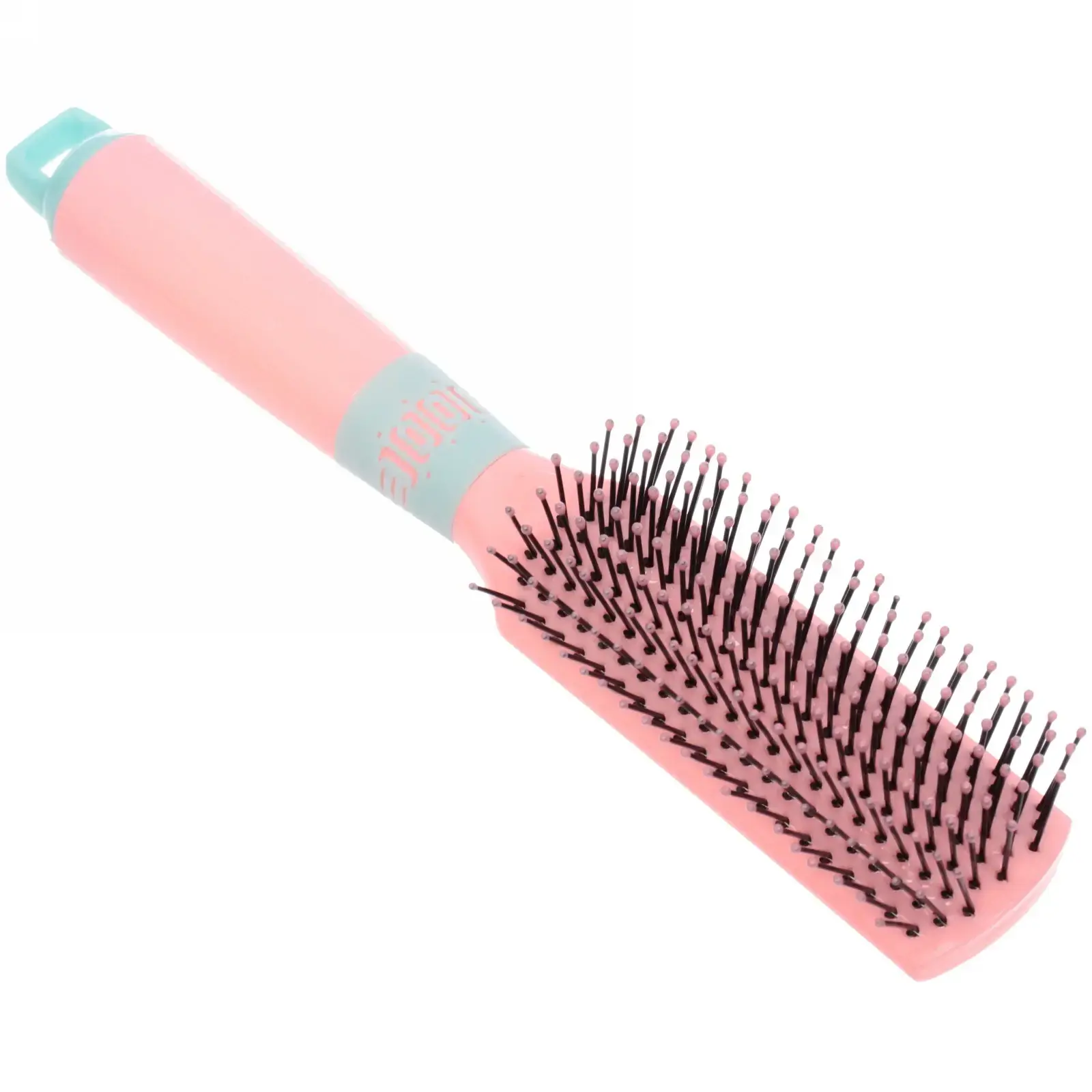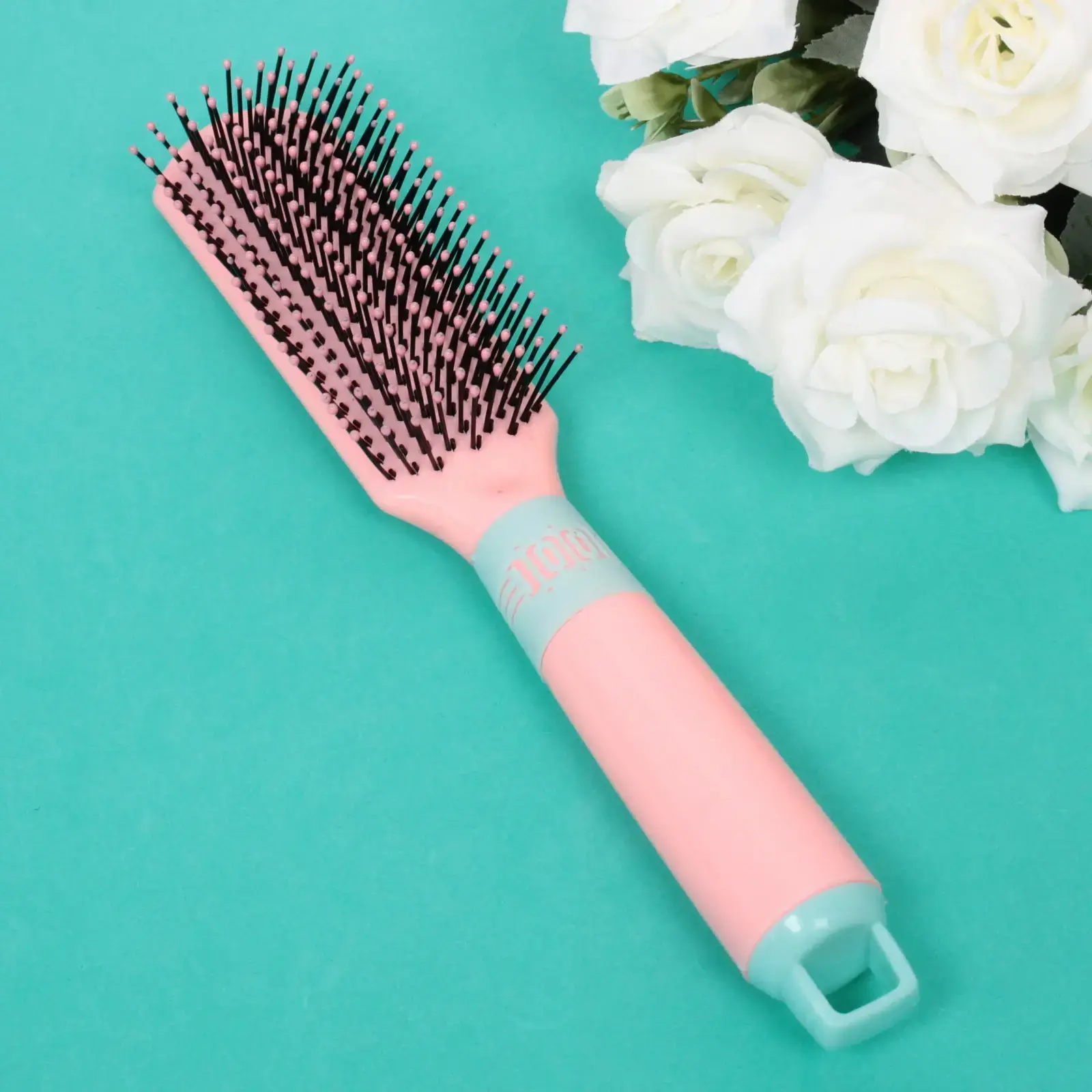 Расческа имеет прямоугольную форму с длинной ручкой, что обеспечивает удобный захват и легкость в использовании. Она идеально подходит для всех типов волос, включая длинные, короткие, прямые и кудрявые. Массажные зубцы аккуратно распутывают волосы, не повреждая их структуру, что делает расческу идеальной для ежедневного применения.