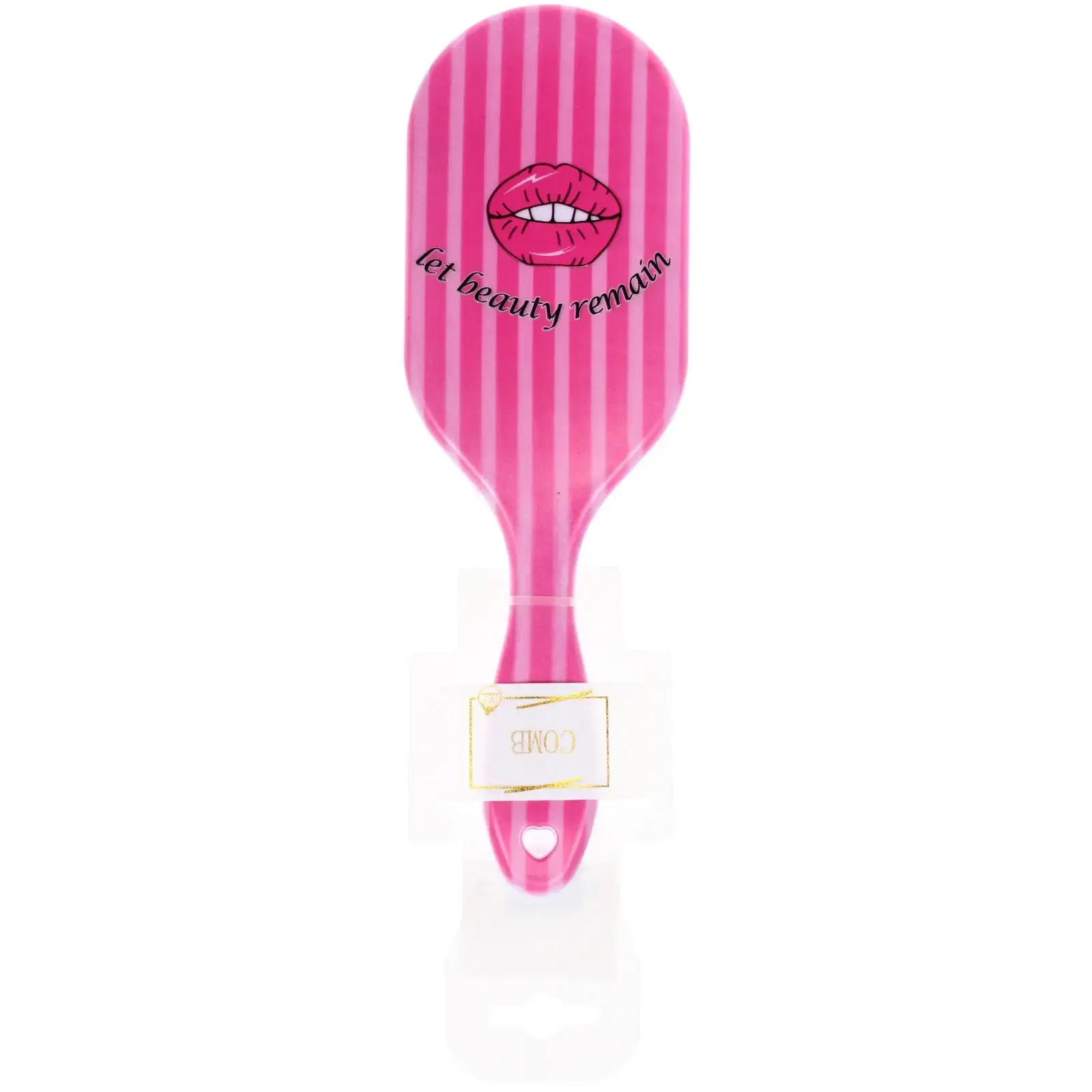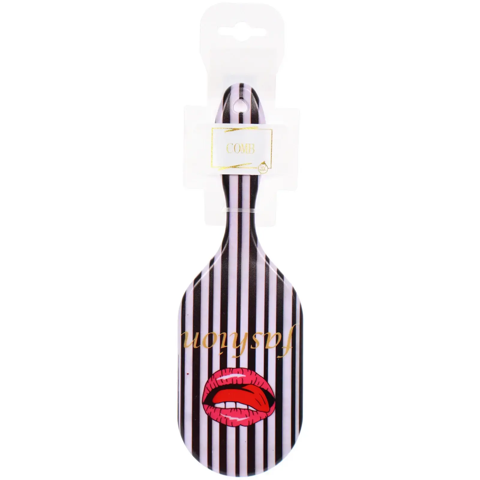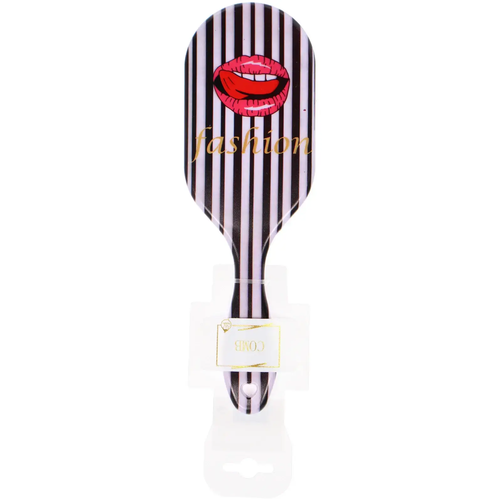 Размер расчески составляет 23 см в длину и 7,5 см в ширину, что делает ее удобной для хранения и использования. В комплект входят четыре дизайна, каждый из которых отличается яркими цветами и стильными графическими элементами, такими как изображения губ и надписи, что добавляет индивидуальности вашему образу.