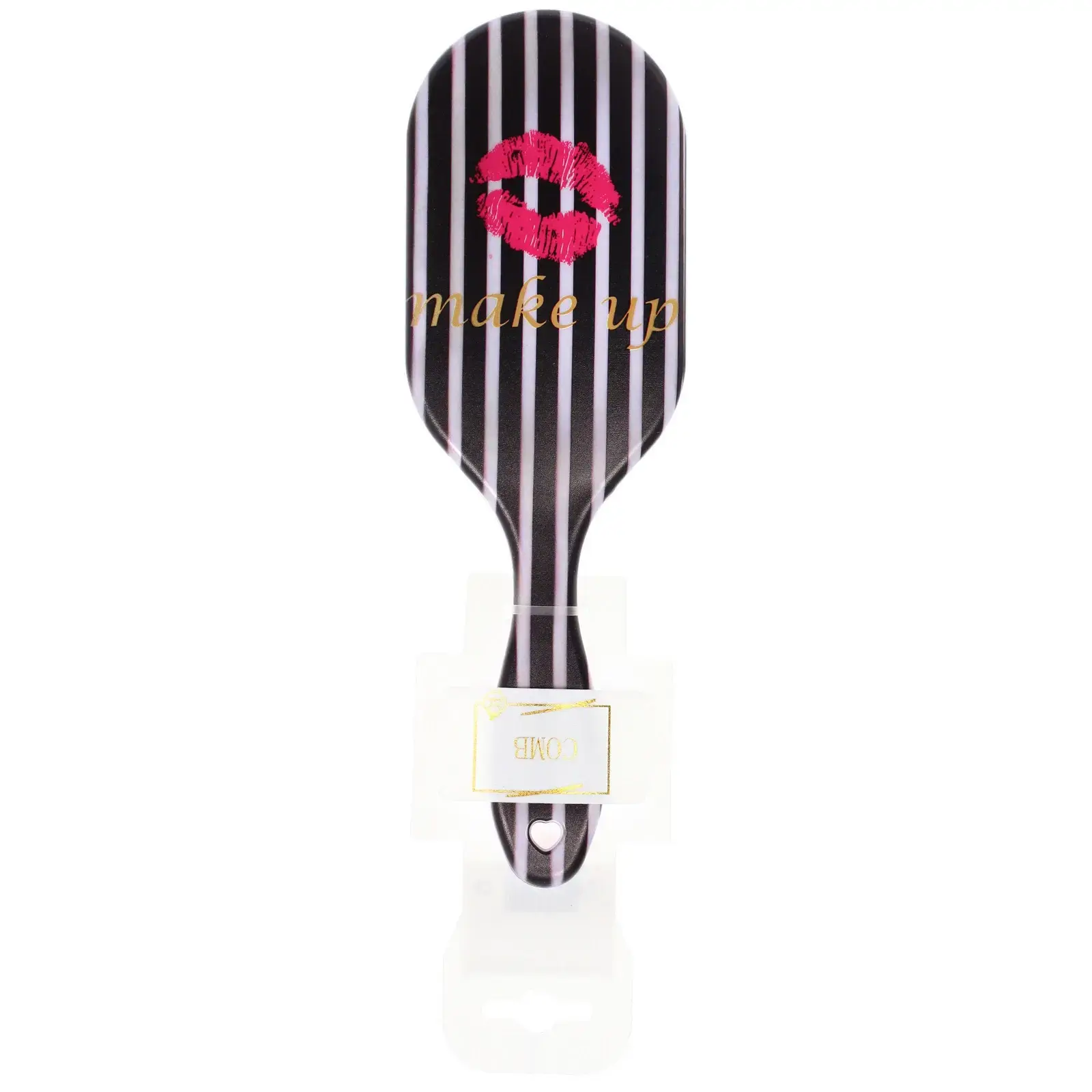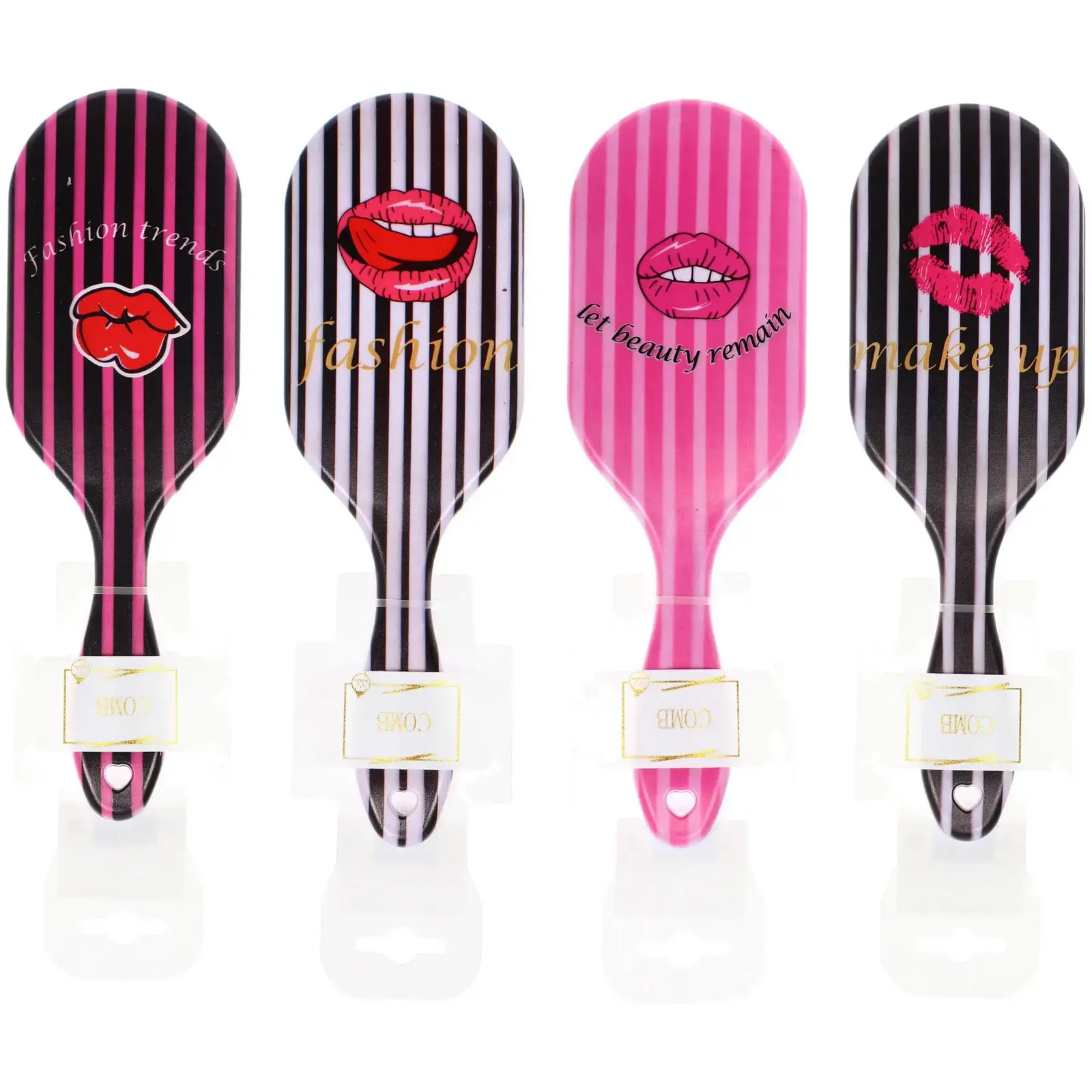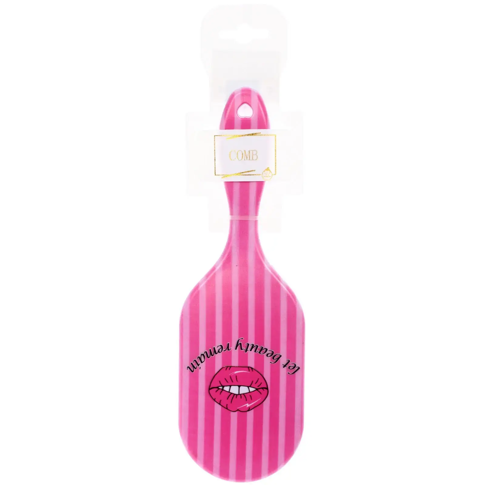 Размер расчески составляет 23 см в длину и 7,5 см в ширину, что делает ее удобной для хранения и использования. В комплект входят четыре дизайна, каждый из которых отличается яркими цветами и стильными графическими элементами, такими как изображения губ и надписи, что добавляет индивидуальности вашему образу.