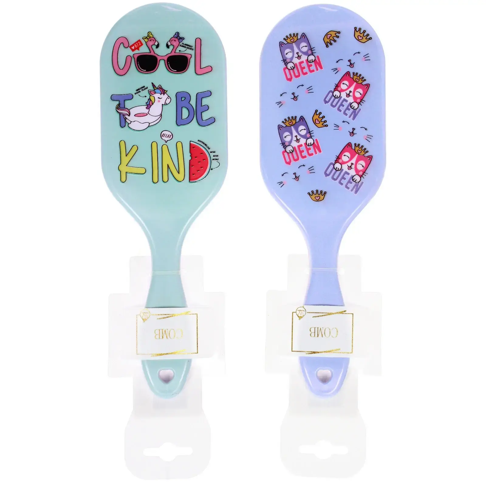 Подарите своим волосам заботу и комфорт с овальной массажной расческой из коллекции «ИМАНИ - КОТИКИ». Эта расческа не только украсит ваш туалетный столик, но и обеспечит бережный уход за волосами, предотвращая их повреждение и спутывание. Яркие дизайны и удобная форма делают её идеальным аксессуаром для детей и молодежи. Расческа представлена в разных принтах, выбрать определенный невозможно!