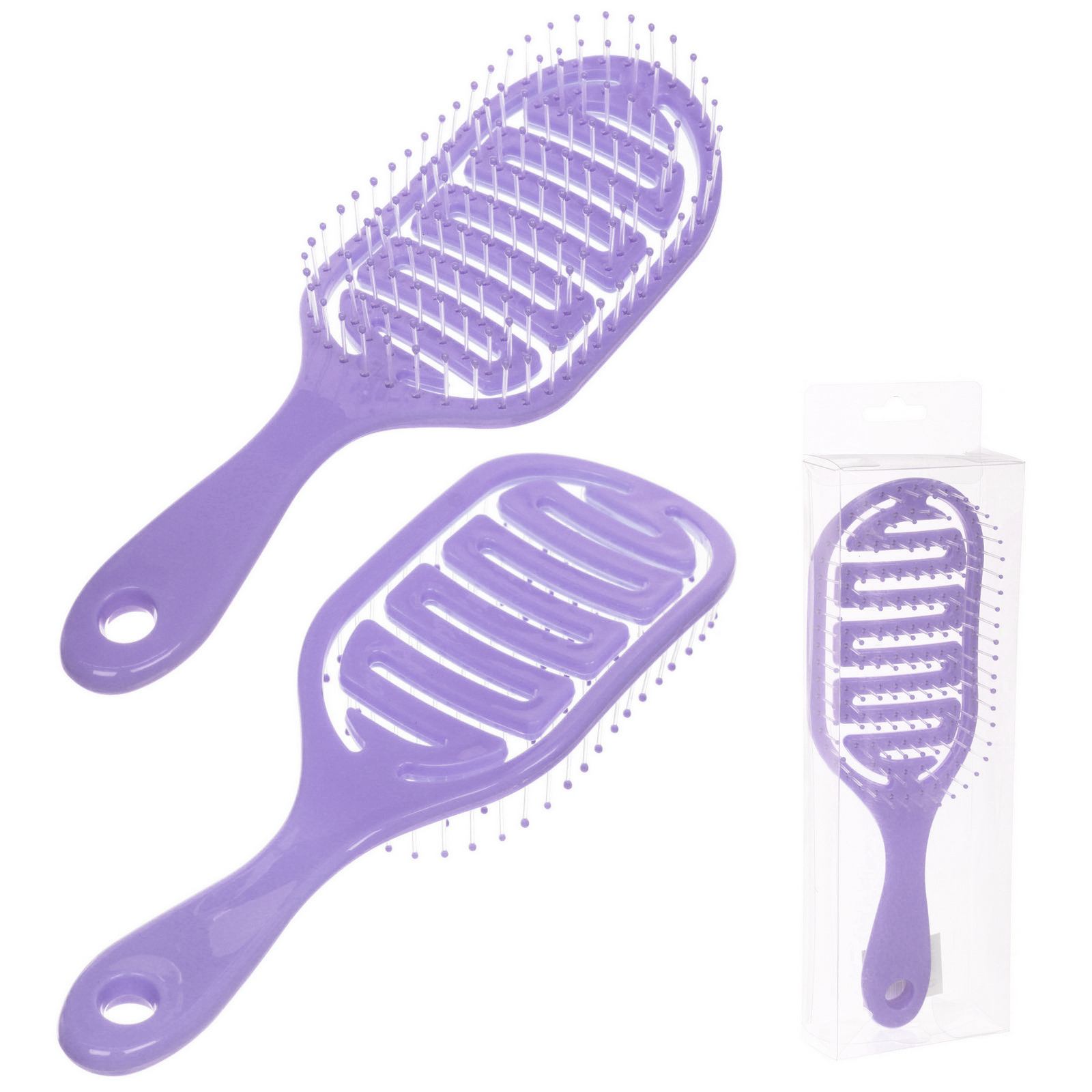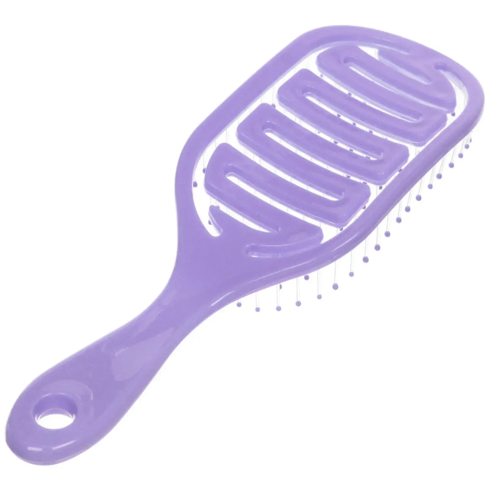 Почему стоит выбрать именно эту расческу? Во-первых, ее массажная поверхность способствует улучшению кровообращения кожи головы, что может положительно сказаться на росте волос. Во-вторых, пластиковые зубцы с округлыми концами бережно распутывают волосы, не вызывая дискомфорта. В-третьих, стильный сиреневый цвет добавляет яркости в ваш уход за волосами.