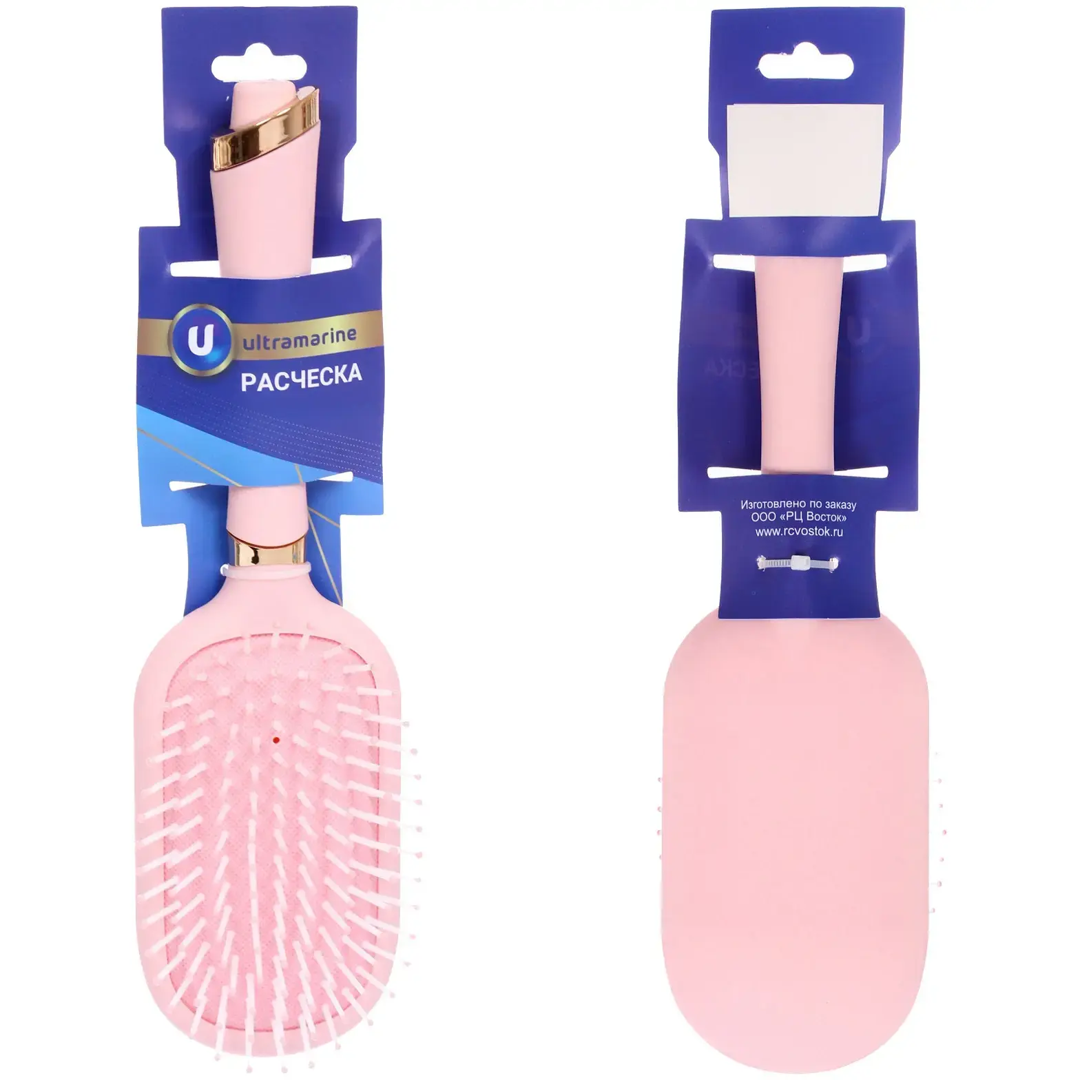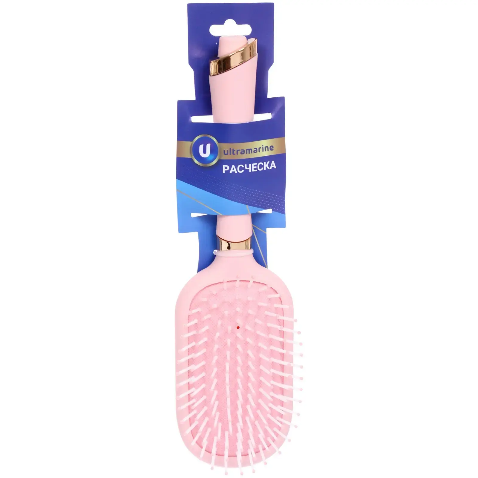 Размеры расчески составляют 25 см в длину и 7.5 см в ширину, что делает ее удобной для хранения и транспортировки. Пластиковый материал легко очищается и не требует особого ухода. Упаковка выполнена в ярком синем цвете с логотипом «Ultramarine», что добавляет товару привлекательности.