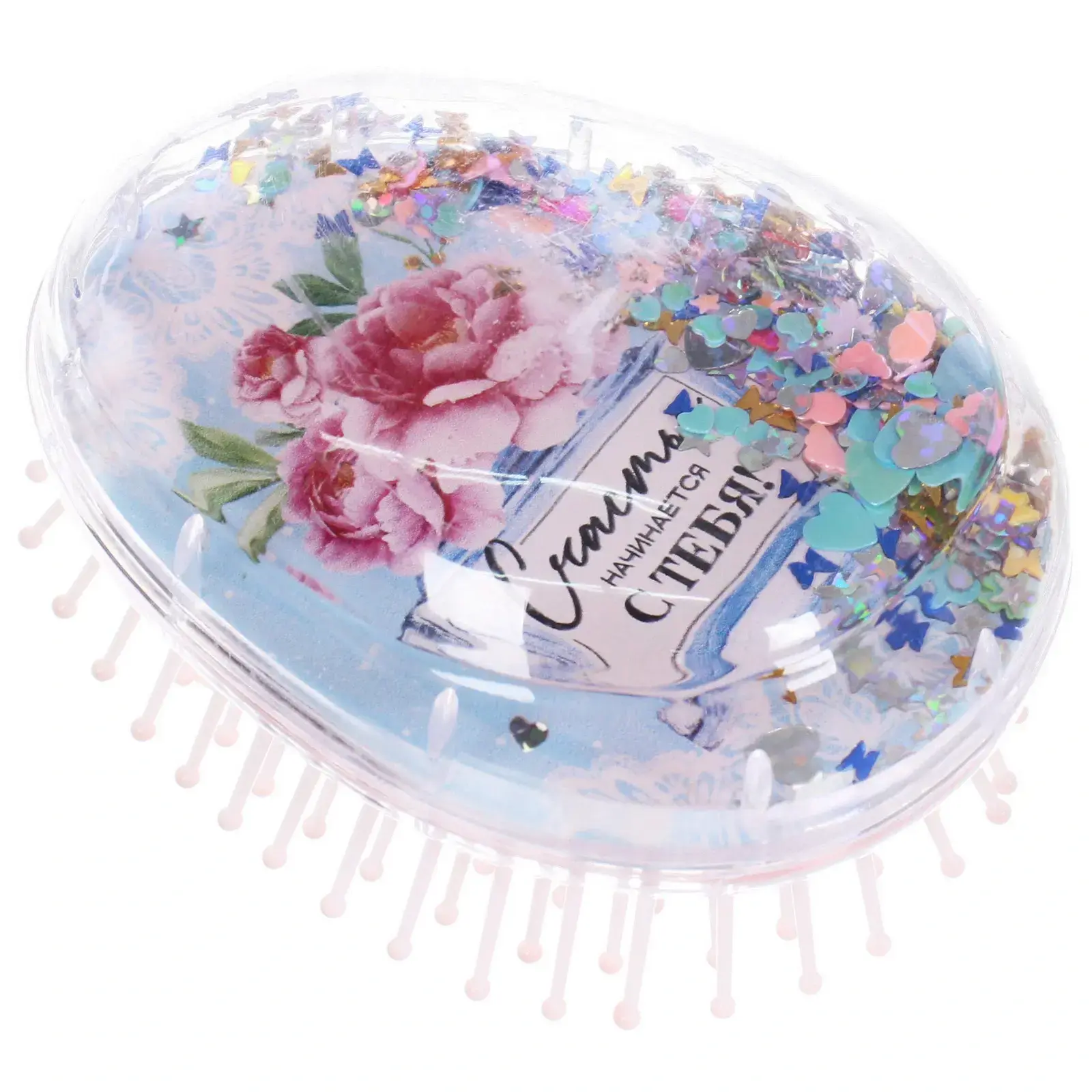 С этой уникальной расческой массажной «ТРАТТИ БУМ» вы сможете не только ухаживать за своими волосами, но и получать удовольствие от процесса. Она создана для тех, кто ценит комфорт и качество в уходе за волосами. Прозрачный корпус с яркими блестками и цветочными мотивами делает ее не только функциональной, но и стильной. Счастье начинается с тебя — это не просто надпись, а философия, которую вы сможете ощутить, используя этот аксессуар.