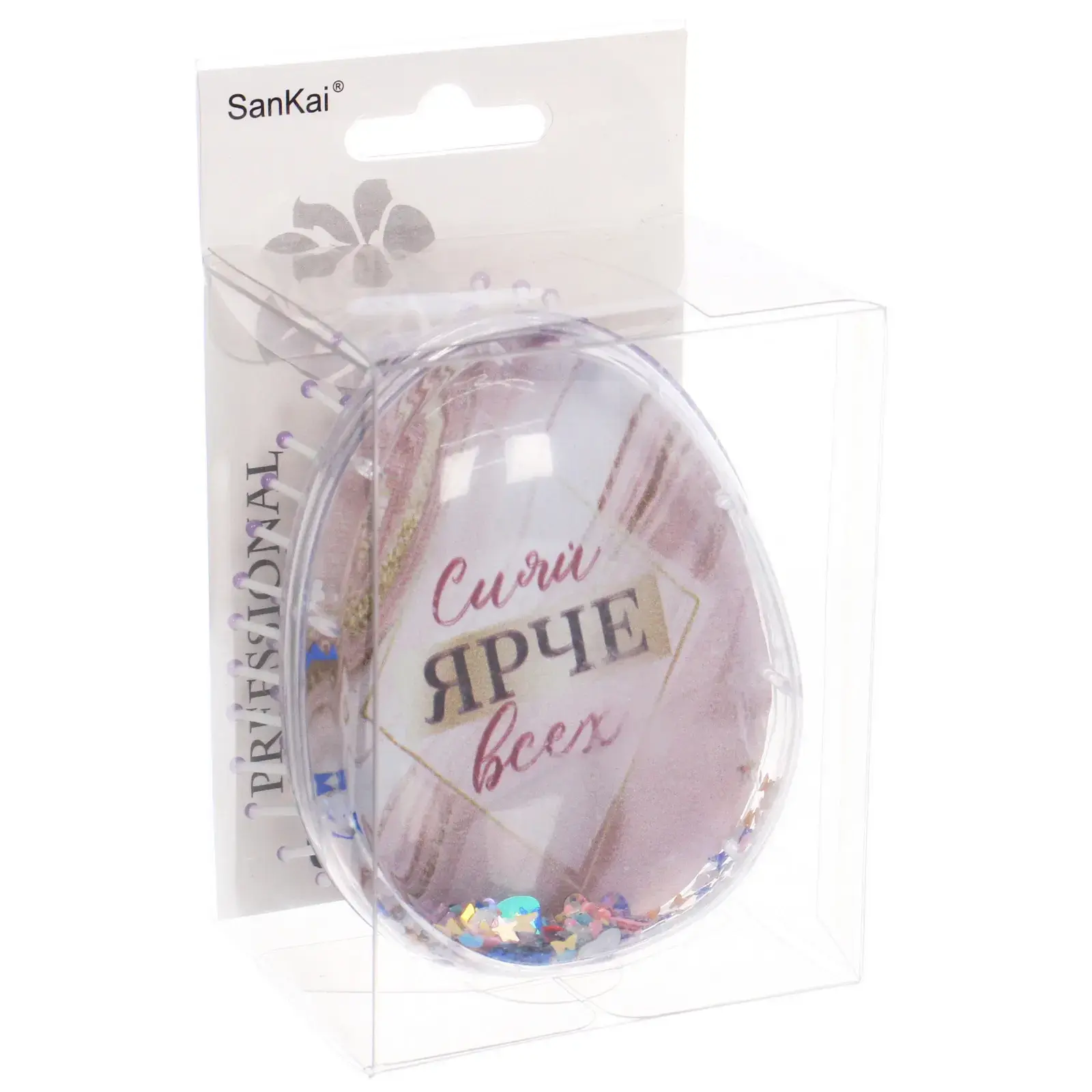 Эта массажная расческа станет вашим незаменимым помощником в уходе за волосами. С её помощью вы сможете не только распутать волосы, но и сделать массаж кожи головы, что способствует улучшению кровообращения и укреплению волос. Яркий и привлекательный дизайн расчески с блестками и звездами создаст хорошее настроение и добавит ярких красок в ваш день.