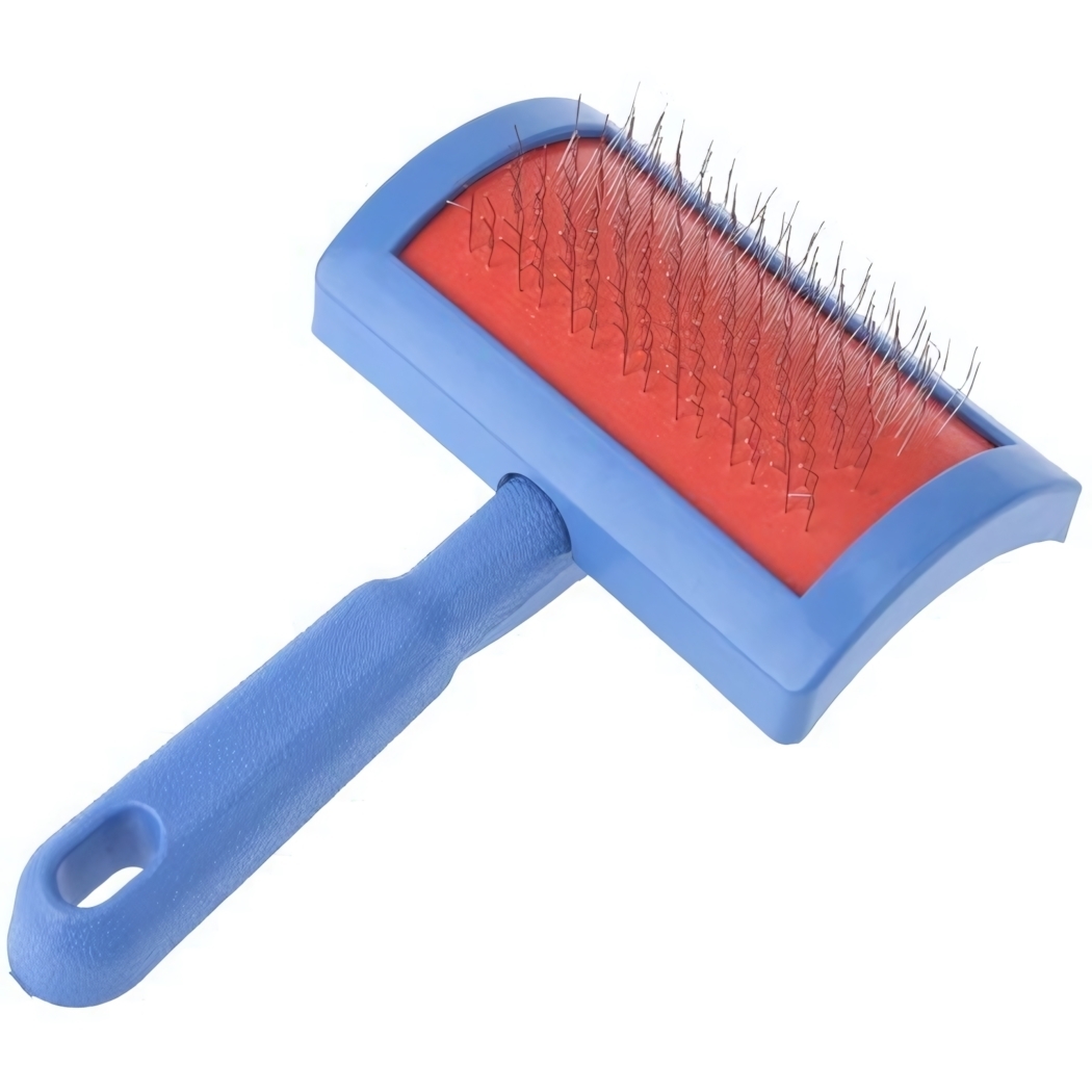 Расческа выполнена из качественных материалов: металлические зубцы обеспечивают долговечность, а пластиковая ручка — легкость и удобство в использовании. Основной цвет инструмента — синий, что делает его стильным дополнением к вашему арсеналу для ухода за питомцем. Не упустите возможность сделать уход за шерстью вашего любимца простым и приятным!
