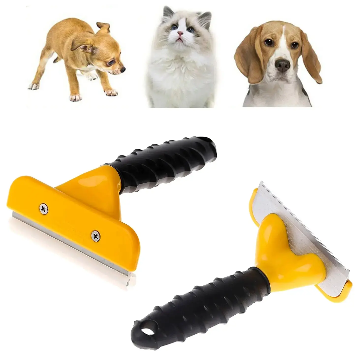 Расческа-пуходерка для собак и кошек, уменьшение линьки до 90%, металл/пластик, 10х15 см, желтый/черный
