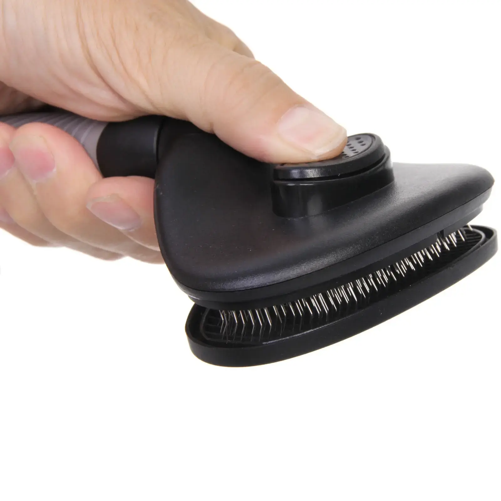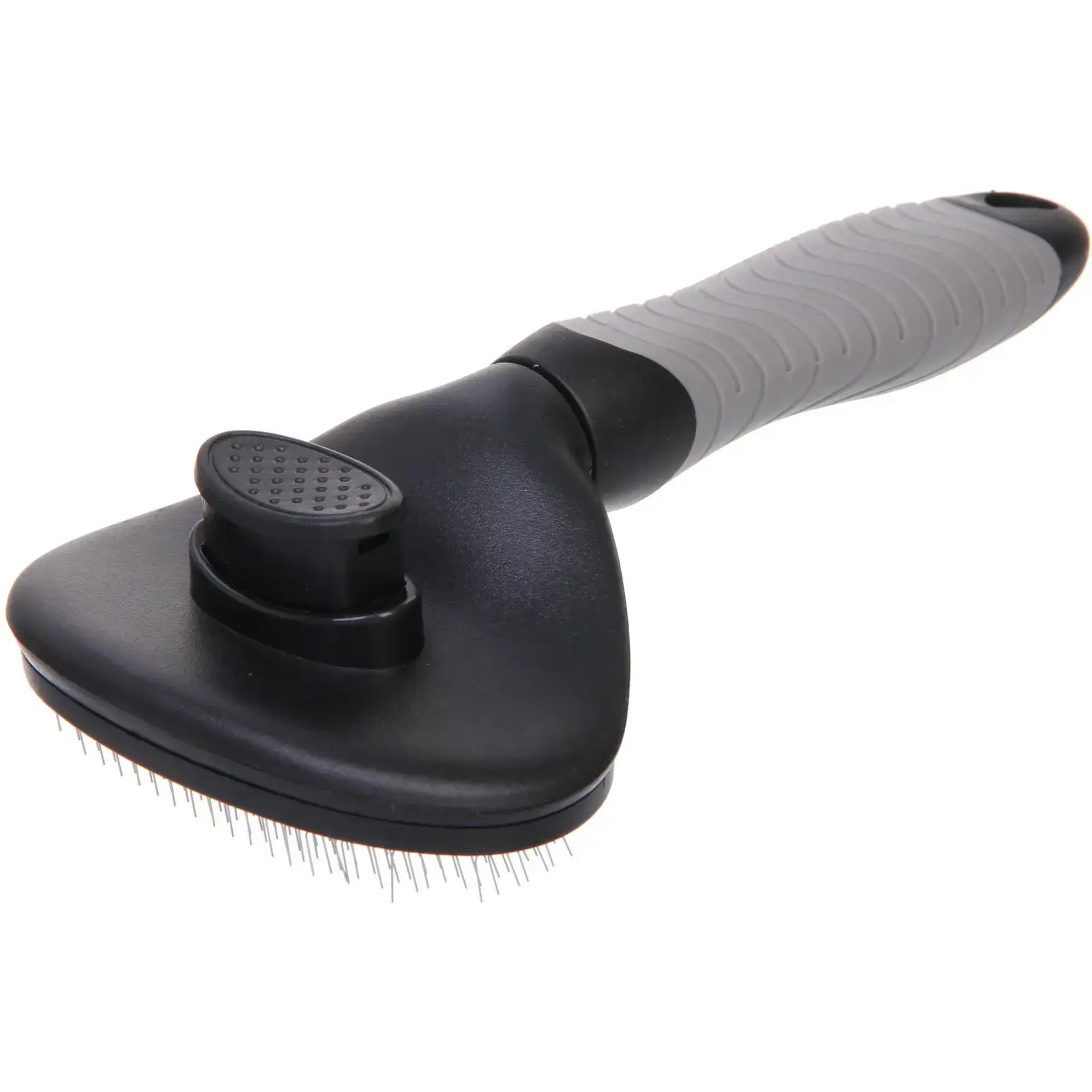 Прорезиненная ручка обеспечивает комфортное использование даже при длительном груминге. Специальная кнопка самоочистки позволяет быстро и легко удалять собранные волосы всего одним нажатием.