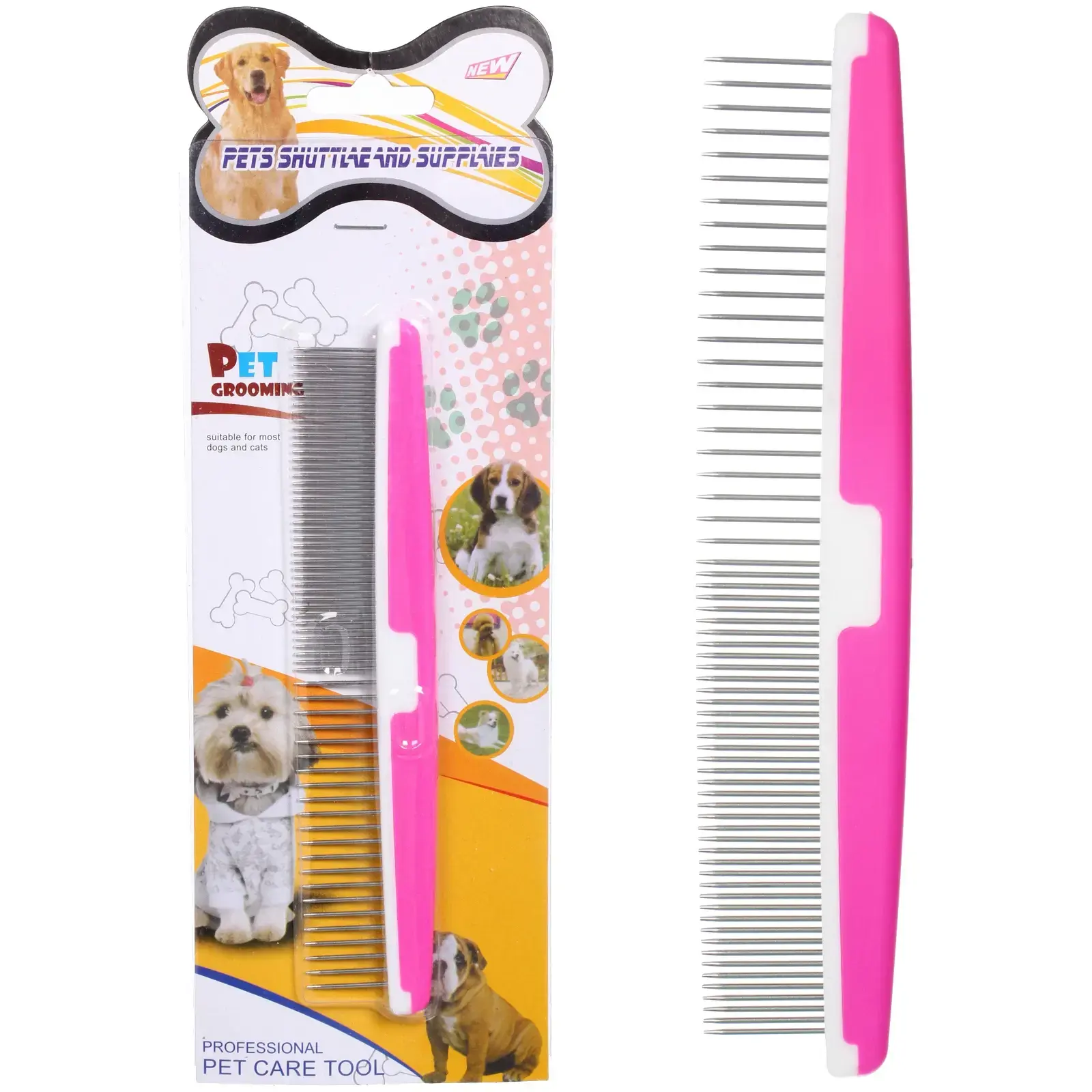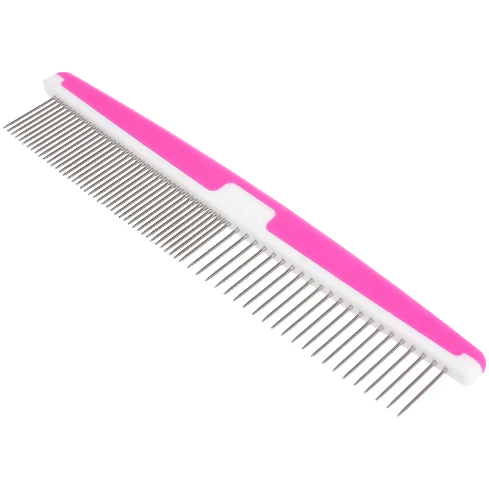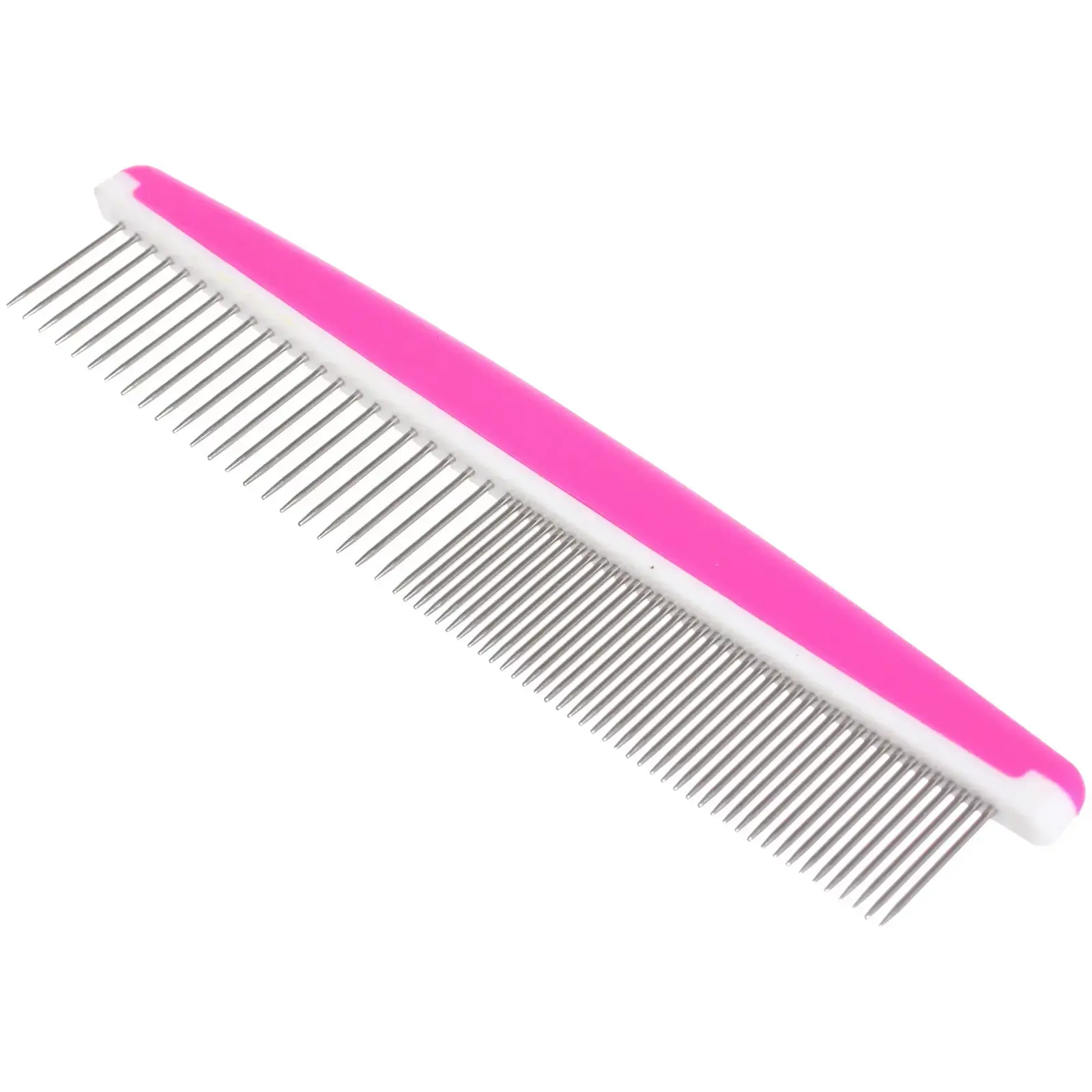 Эта расческа подходит для большинства собак и кошек, что делает её универсальным инструментом для домашних животных. Используйте её для регулярного ухода за шерстью, чтобы ваш питомец всегда выглядел аккуратно и ухоженно. Расческа имеет две стороны: одна с частыми металлическими зубьями для удаления колтунов, другая с редкими пластиковыми зубьями для более деликатного ухода.