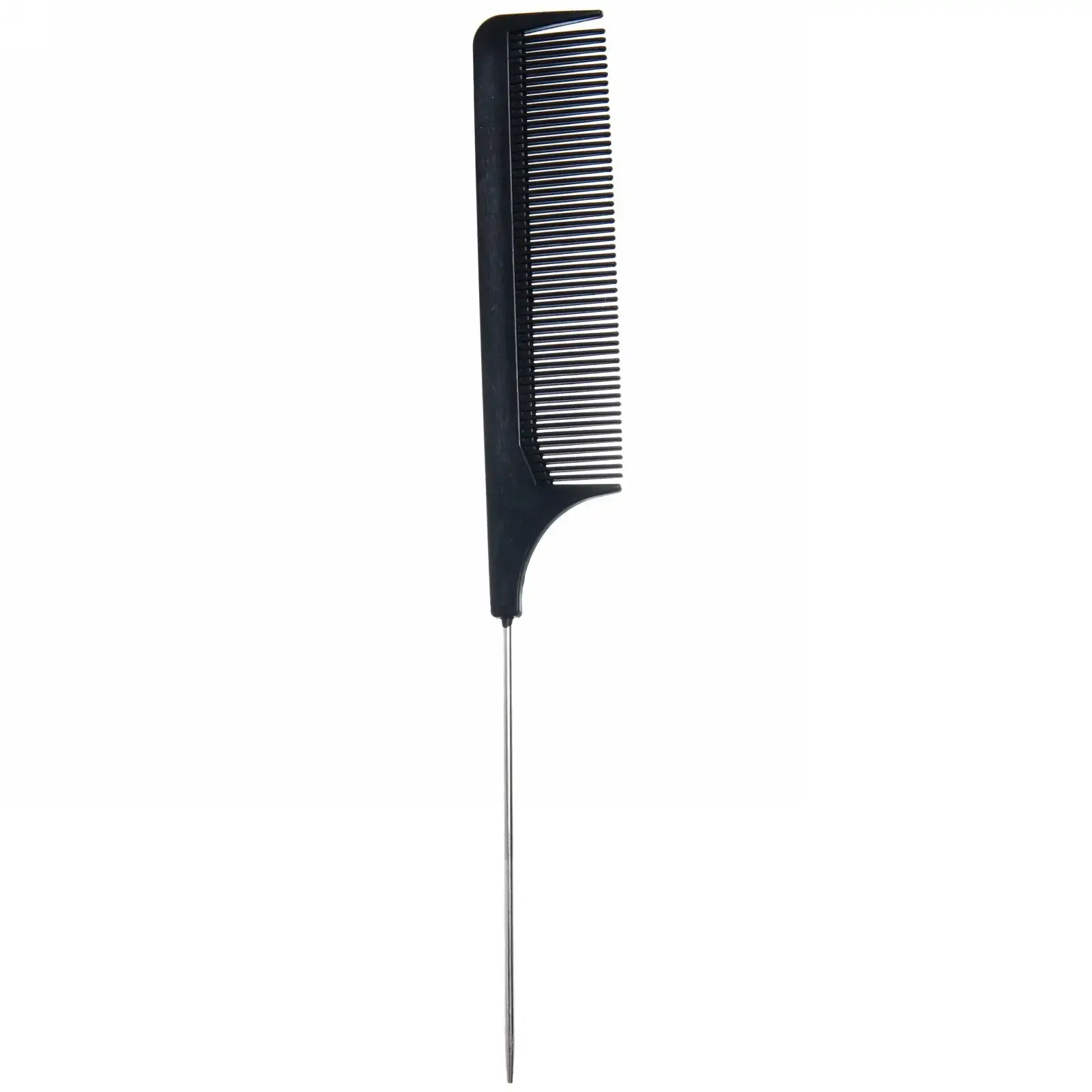 Расческа с металлическим хвостиком, черная, 19см, для начеса и укладки