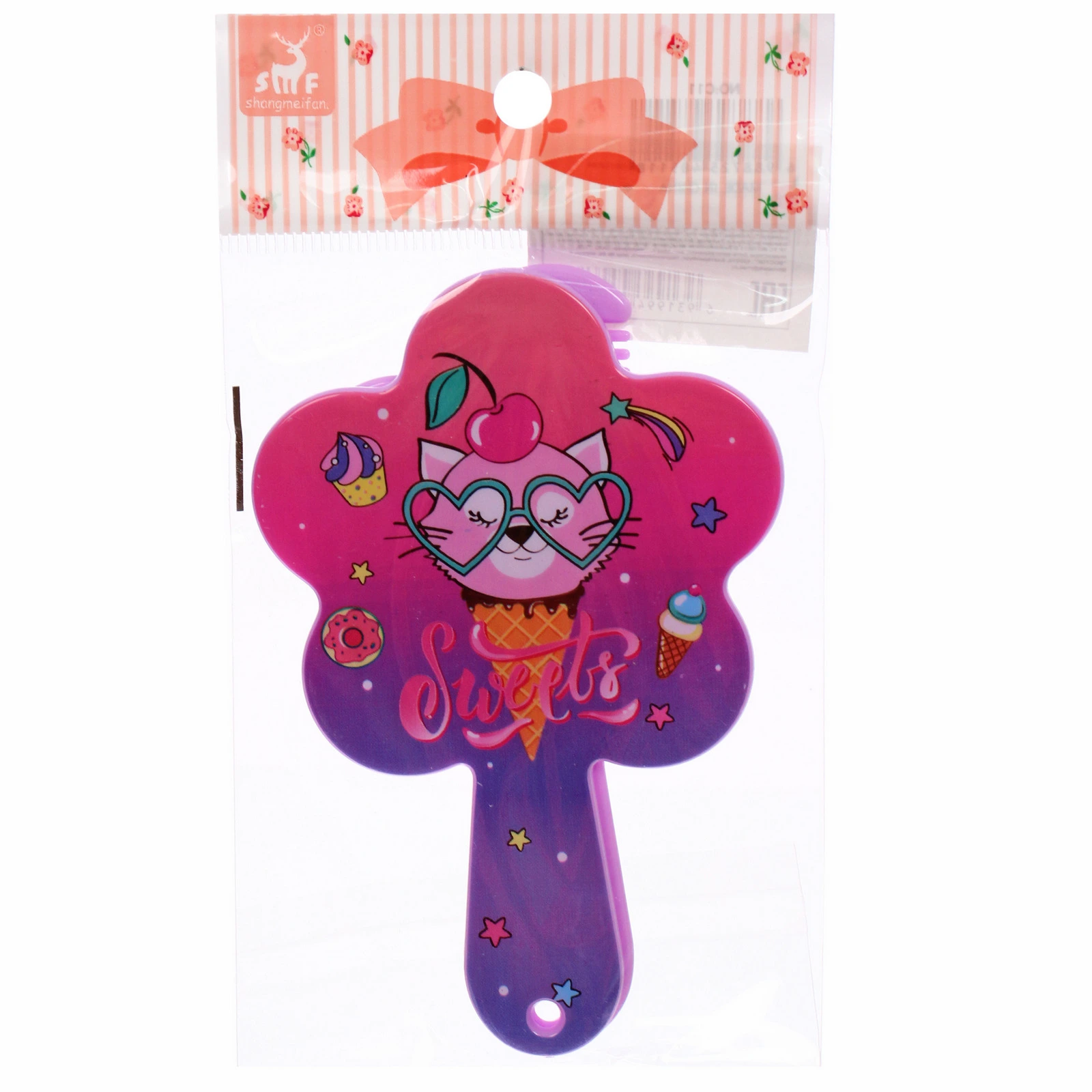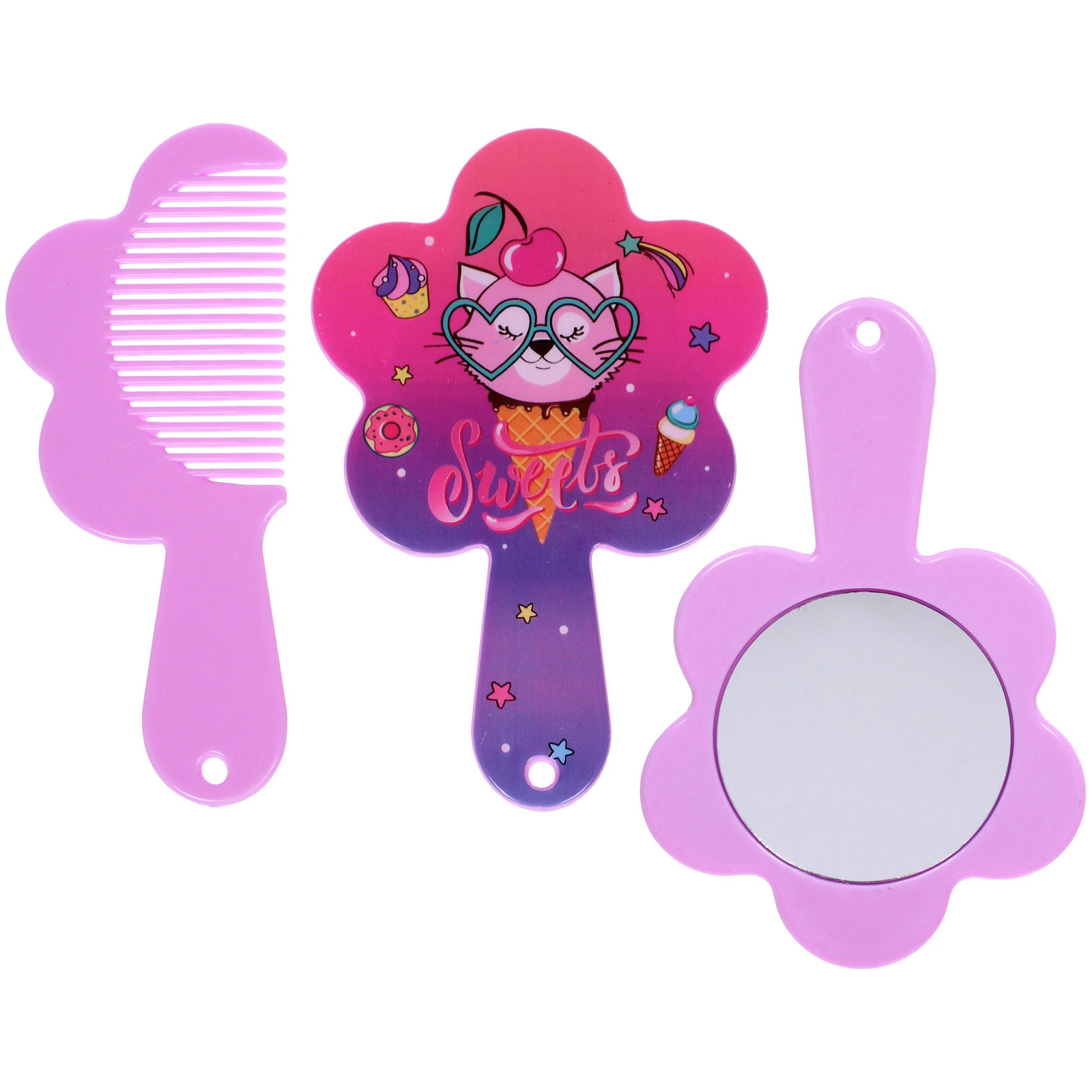 Набор изготовлен из безопасного пластика и дополнен качественным стеклянным зеркалом. Гладкая поверхность корпуса легко очищается от загрязнений, сохраняя первоначальный вид на долгое время. Такая расческа станет отличным вариантом для небольшого подарка или приятного дополнения к основному презенту для ребенка. Выбирая аксессуары коллекции «МИМИШКИ», вы дарите ребенку радость от использования красивых и качественных вещей.