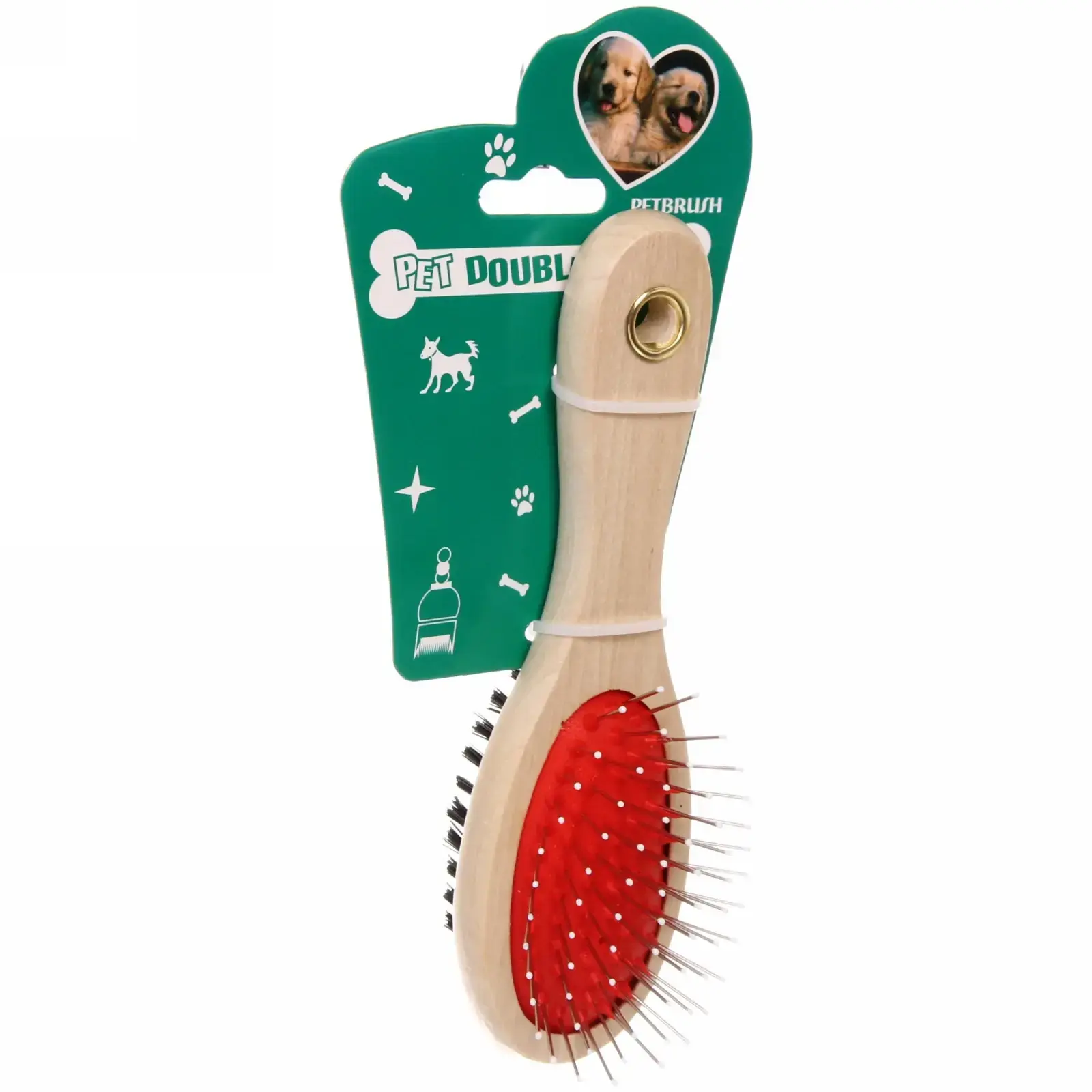 Расческа имеет удобный размер 18 см, что позволяет легко держать её в руке. Деревянная ручка обеспечивает надежный захват, а комбинированные щетинки (мягкие и жесткие) позволяют эффективно ухаживать за шерстью. Регулярно удаляйте с расчески выпавшую шерсть для поддержания её в идеальном состоянии.