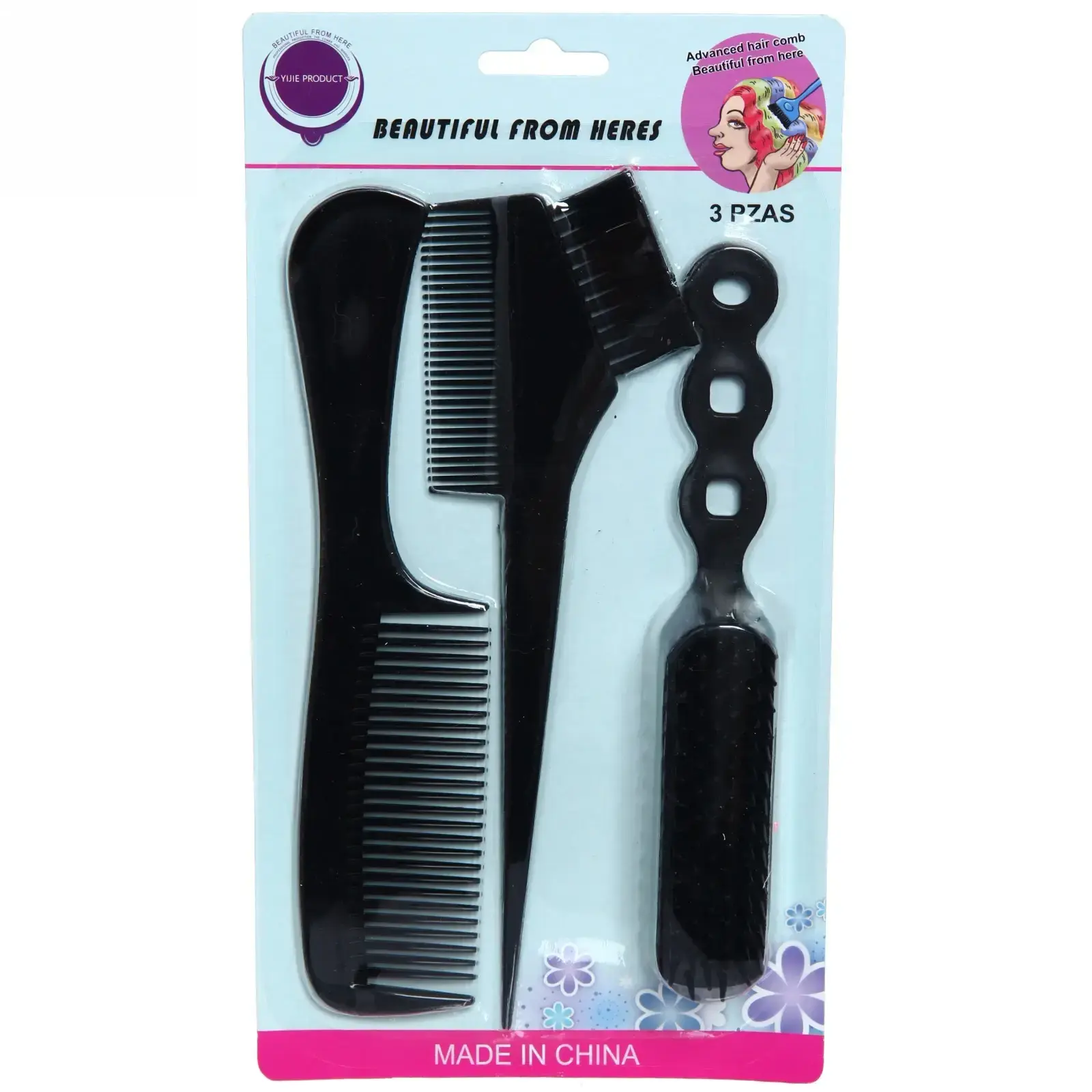 Каждая расческа имеет длину 20 см, что делает их удобными для использования. Цвета в наборе представлены в ярком миксе, что добавляет настроения в процесс укладки. Упаковка с цветочными узорами делает набор еще более привлекательным.