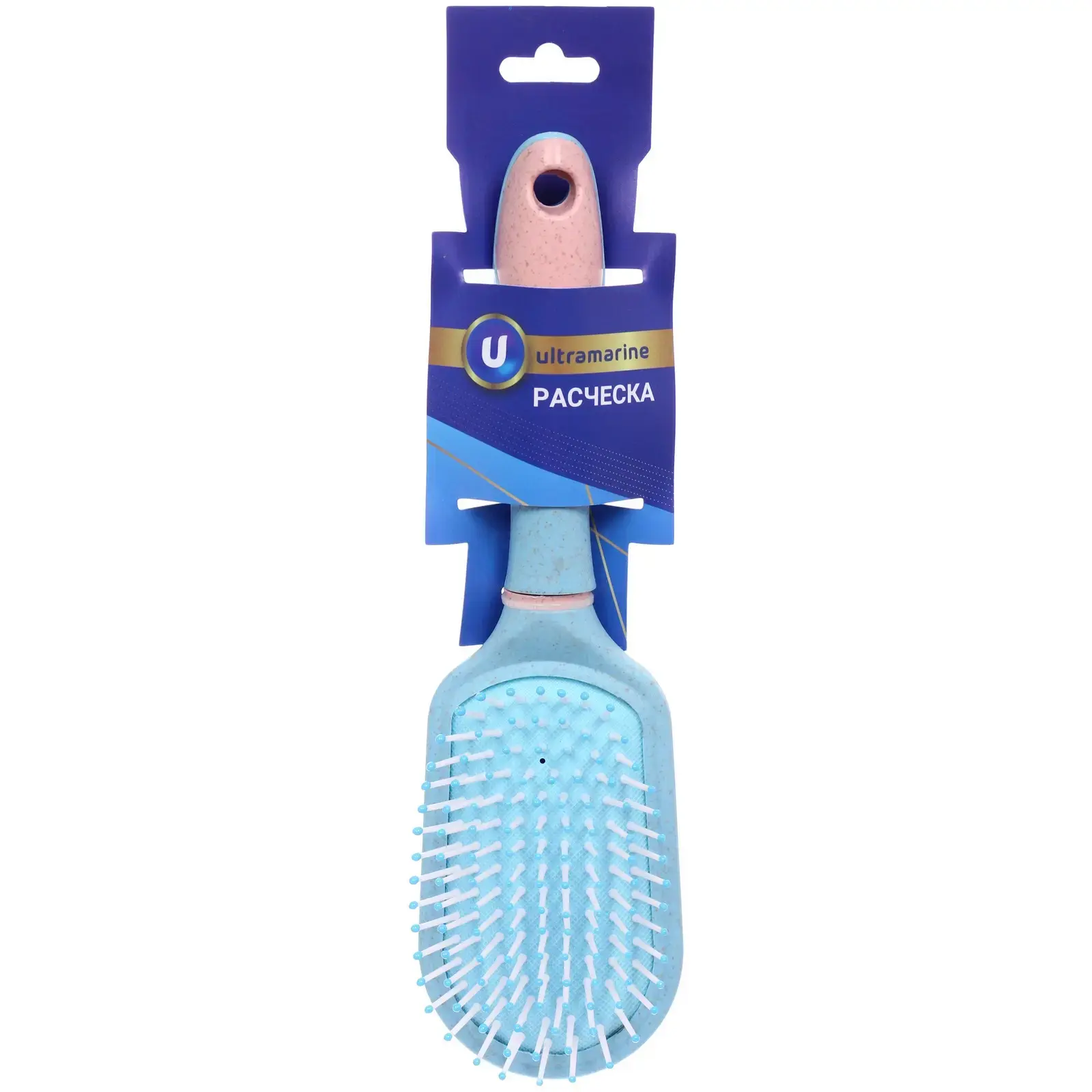 Размеры расчески составляют 24.5 см в длину и 5 см в ширину, что делает её компактной и удобной для использования. Изготовлена из высококачественного пластика, который обеспечивает долговечность и легкость в уходе. Небесно-голубой цвет с мелкими темными вкраплениями придаёт расческе стильный вид, а светло-розовая ручка обеспечивает комфортный захват.