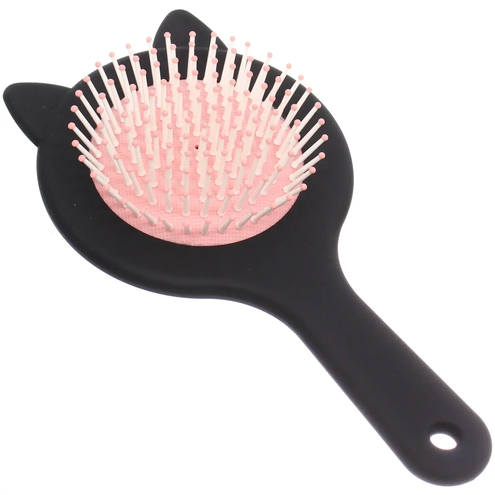 Расчёска выполнена из качественного пластика, что делает её легкой и прочной. Чёрный цвет с розовыми щетинками придаёт ей стильный и современный вид. Удобная ручка с гладкой поверхностью обеспечивает комфортное использование. Не упустите возможность сделать уход за волосами более приятным и эффективным с помощью массажной расчески «КИТИ СЕТ»!