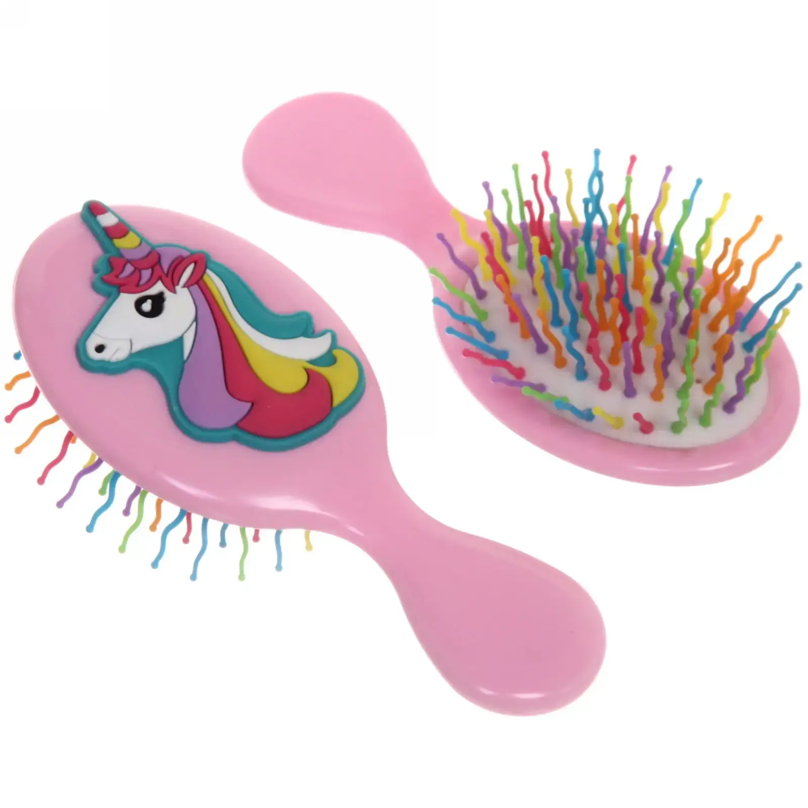 Расчёска идеально подходит для детей и взрослых, благодаря своему удобному размеру 13,8х6 см. Она легко помещается в руке и подходит для использования как дома, так и в поездках. Яркий дизайн с изображением единорога и многоцветными щетинками делает процесс укладки волос веселым и увлекательным.