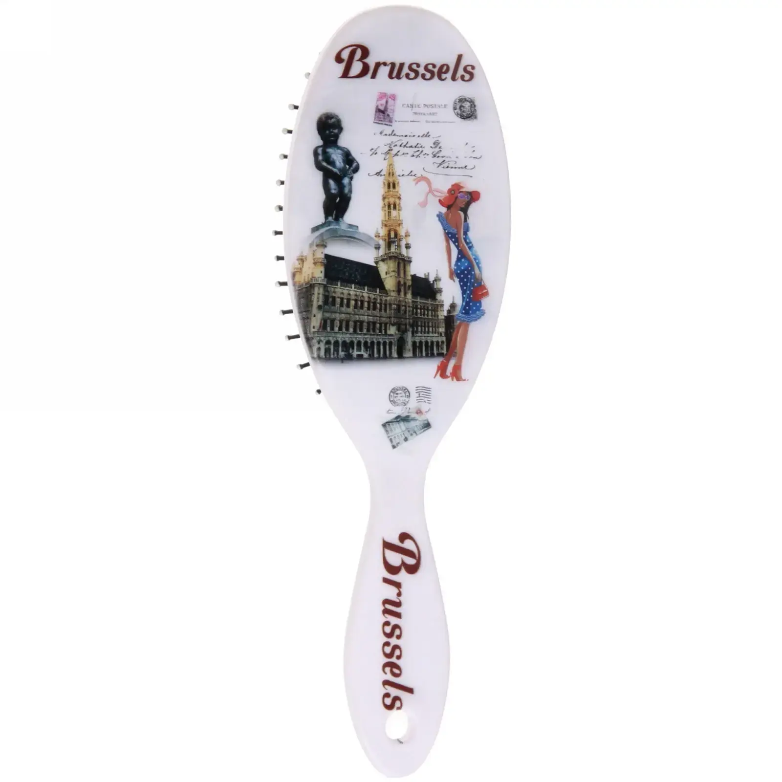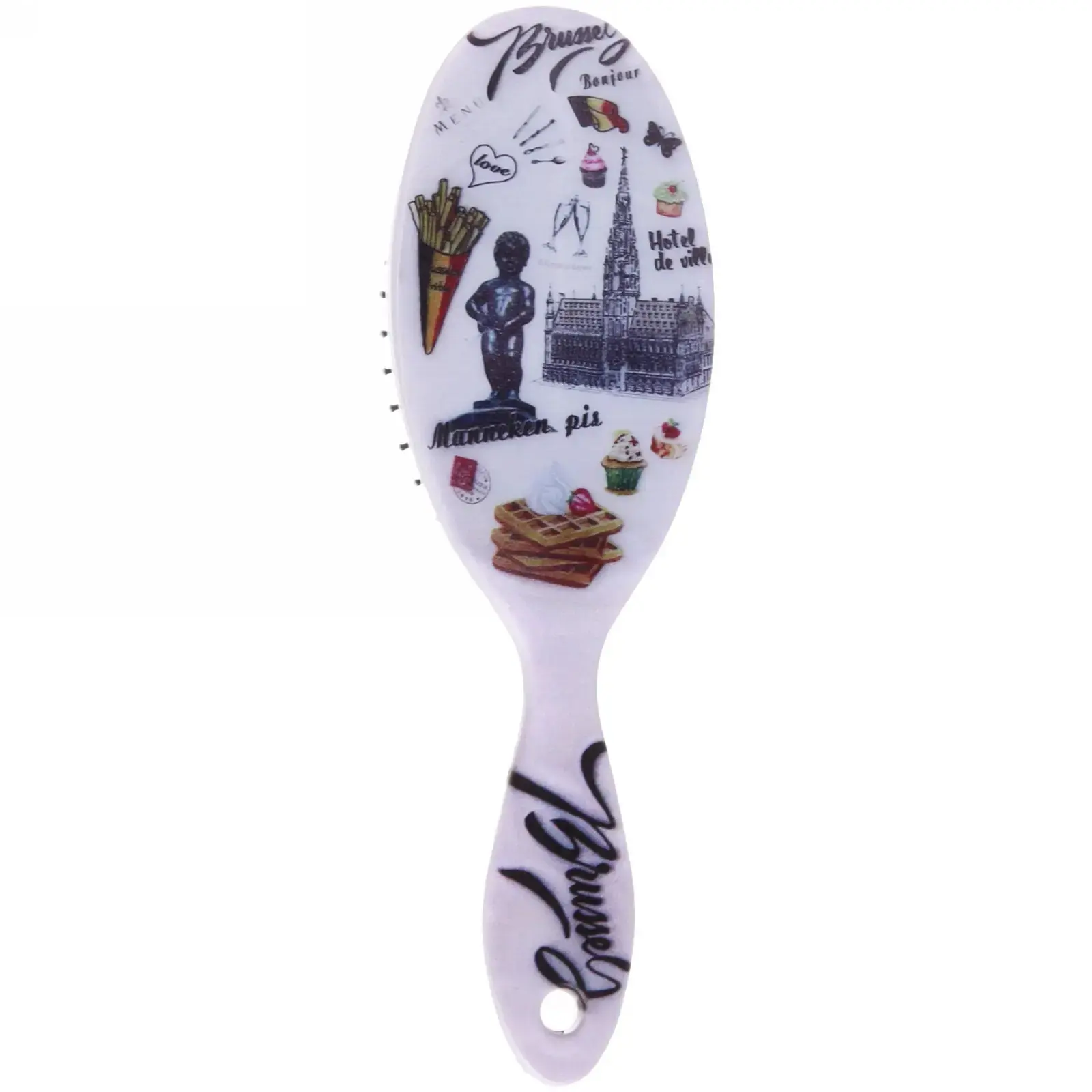 Расчёска имеет классическую овальную форму размером 22х7 см и выполнена из качественного пластика. Мягкие щетинки длиной 1,5 см не рвут и не растягивают волосы, что делает её идеальной для всех типов волос. Она подходит как для женщин, так и для детей, обеспечивая комфортное расчесывание без боли и дискомфорта.