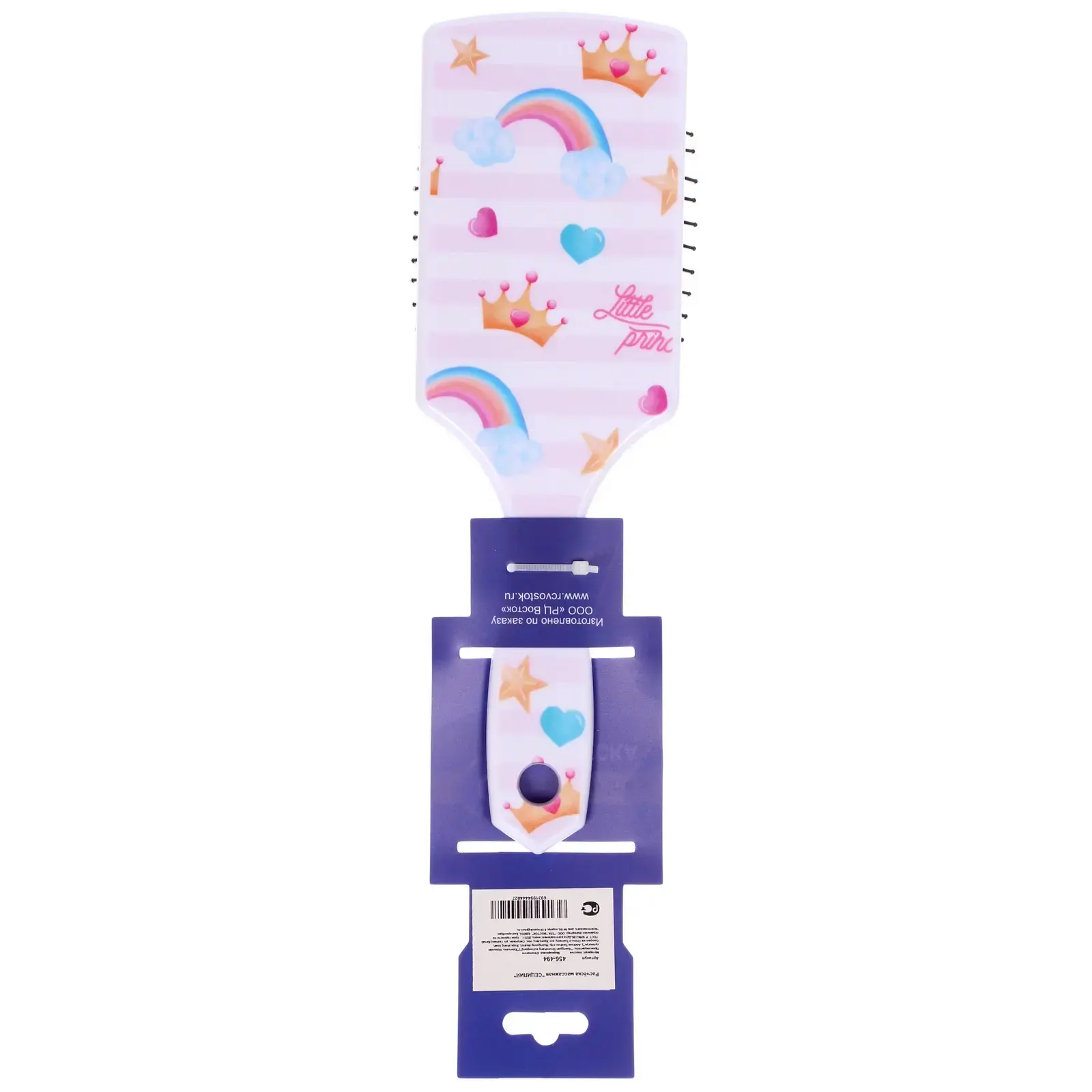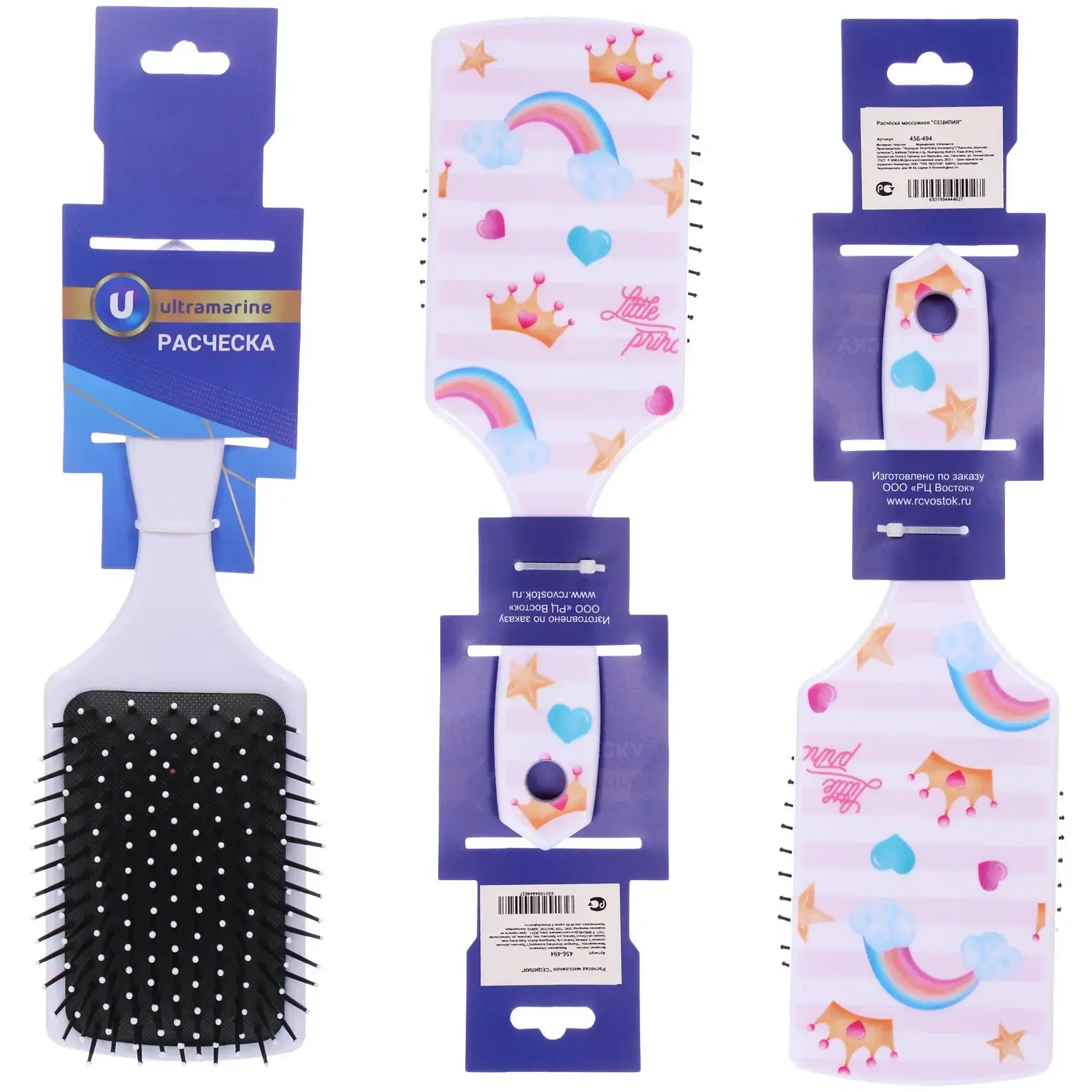 Размер расчески составляет 22х7 см, что делает ее удобной для хранения в сумке или косметичке. Изготовлена из качественного пластика, она устойчива к повреждениям и легко очищается. Основной цвет — белый с яркими пастельными элементами, что добавляет ей привлекательности.