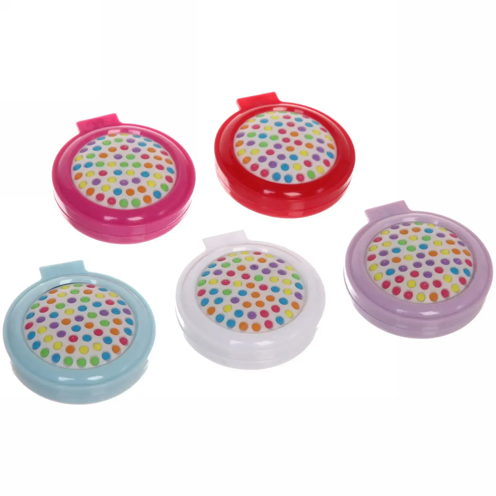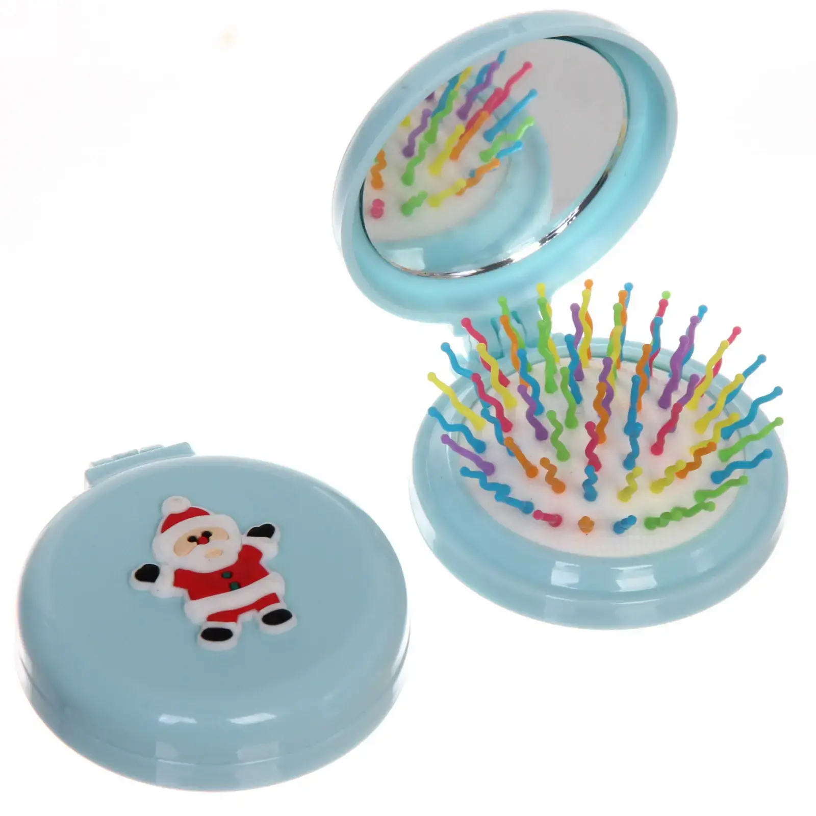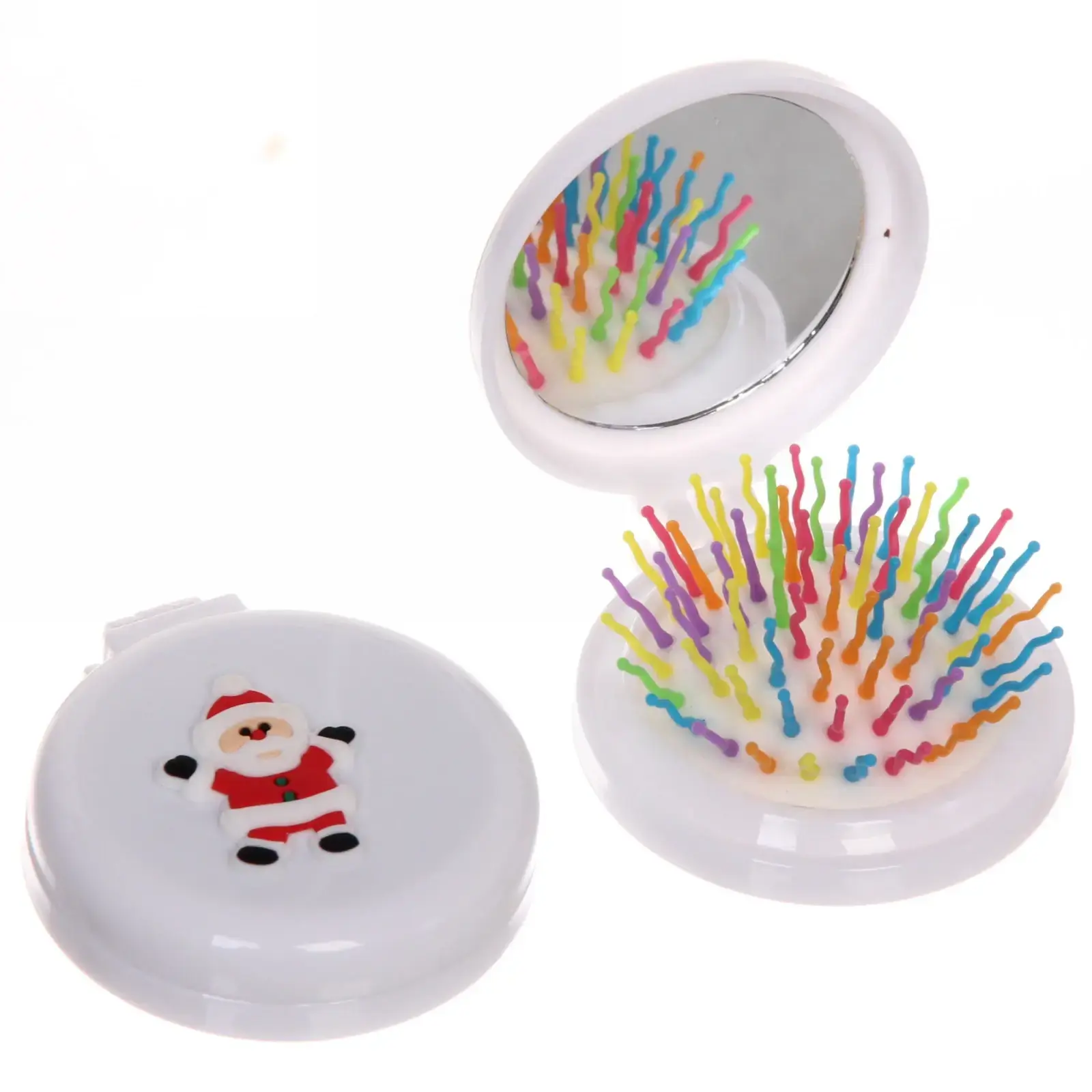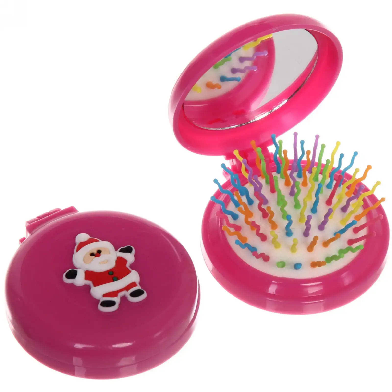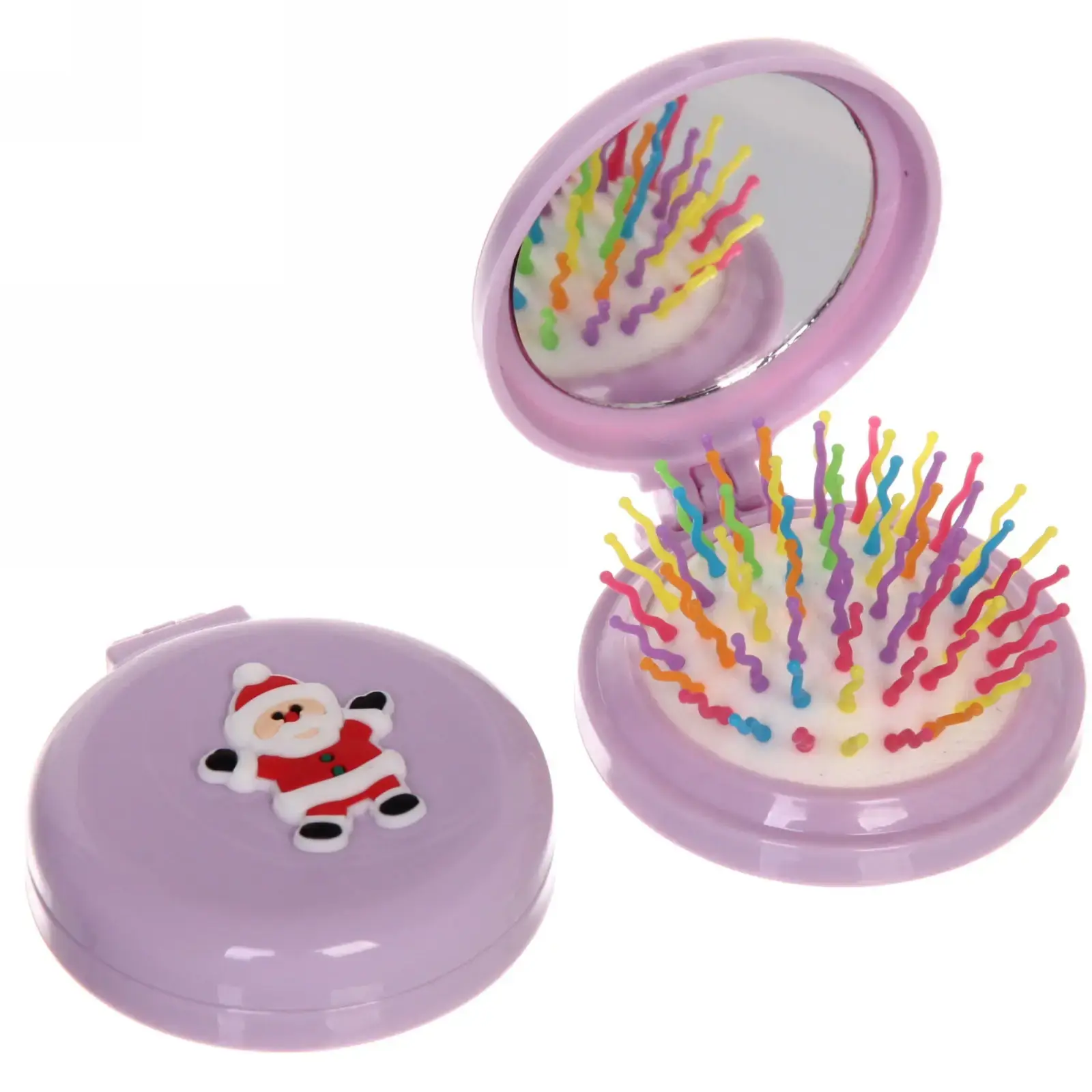 Размер расчёски составляет 6 см в диаметре, что делает её идеальной для переноски. Она выполнена из качественного пластика и стекла, что гарантирует надёжность и долговечность. Доступные цвета: розовый, голубой, белый, фиолетовый, красный и прозрачный. Этот аксессуар станет отличным подарком для друзей и близких в новогодние праздники.