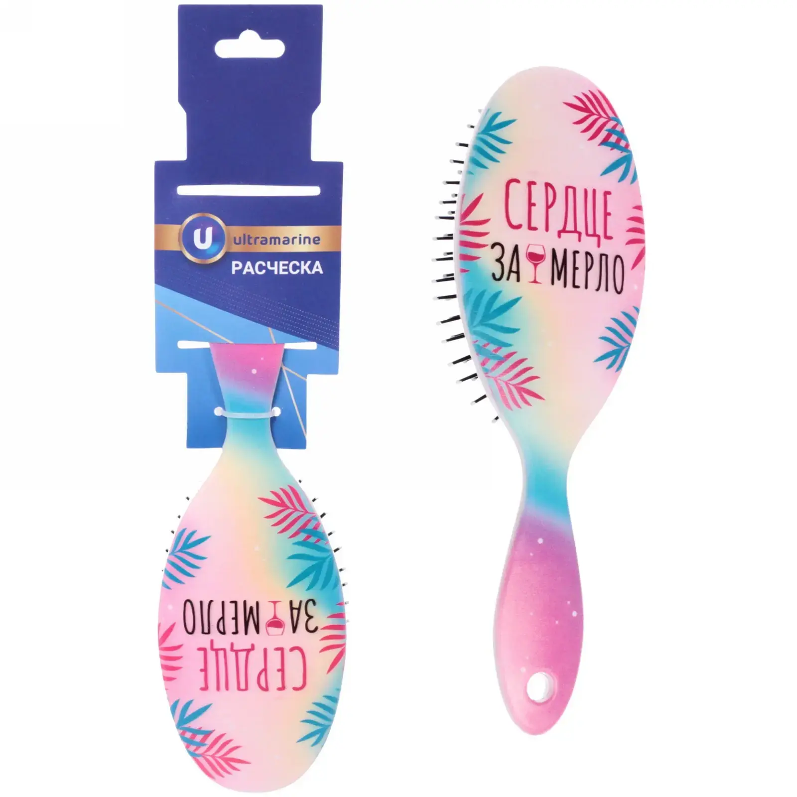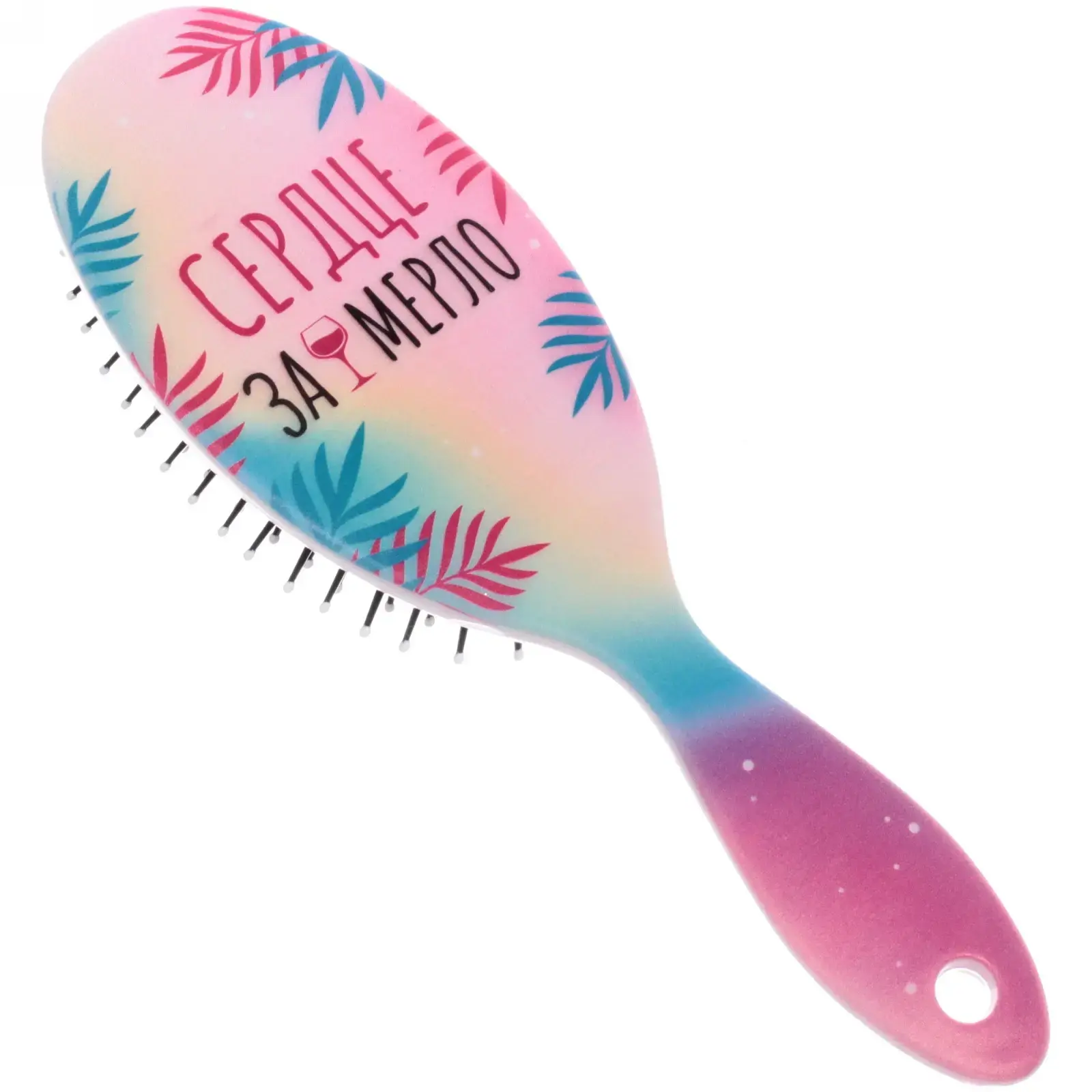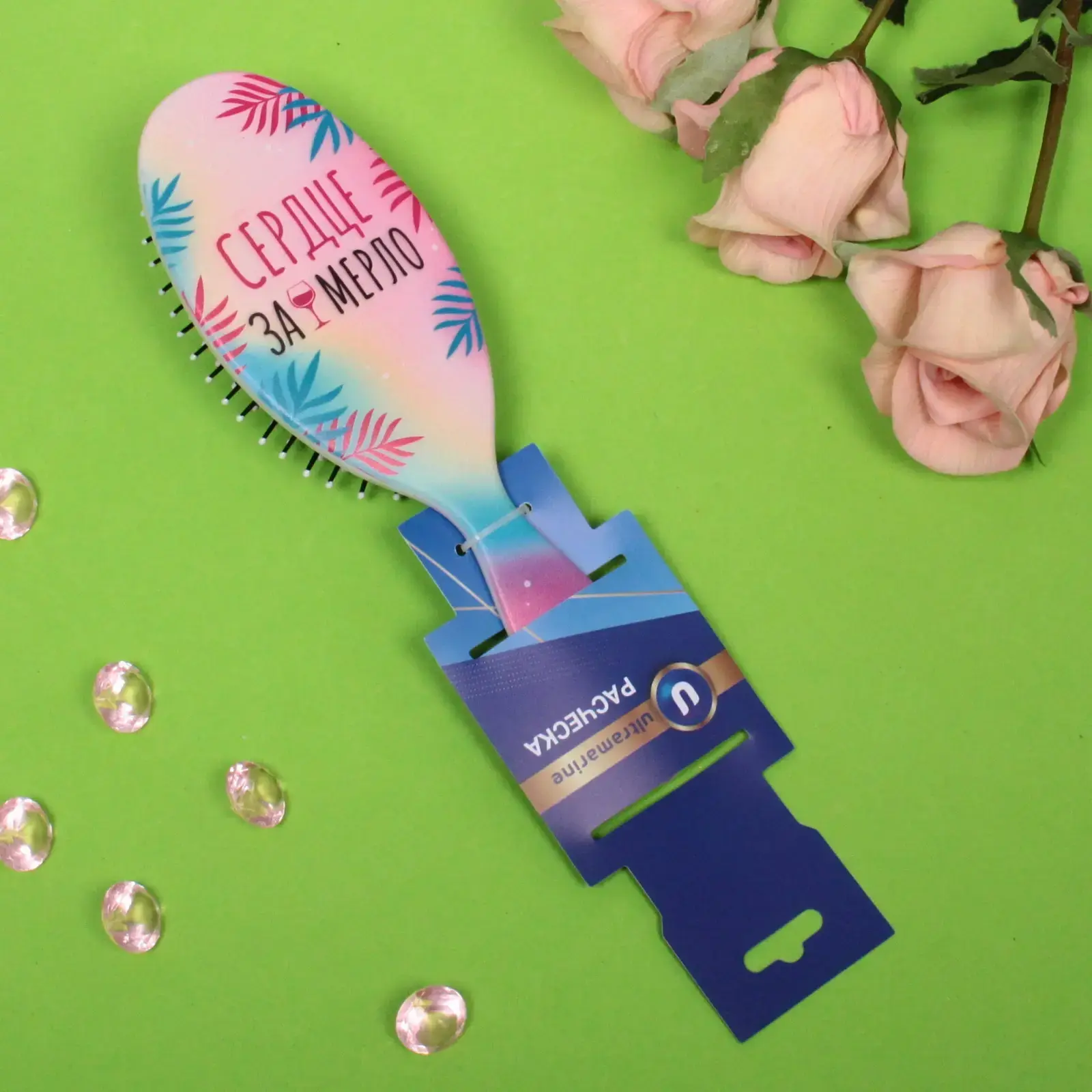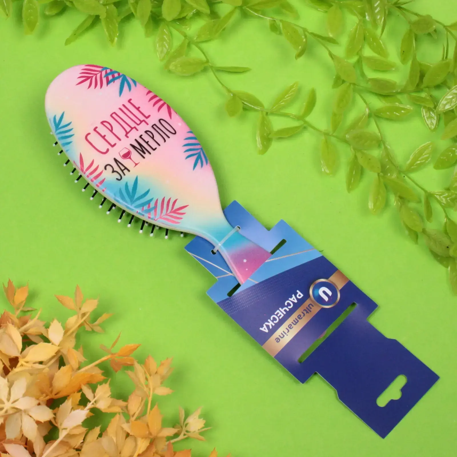 Массажная расчёска «Сердце за мерло», 7х24 см, пластик, градиент розово-голубой с листьями