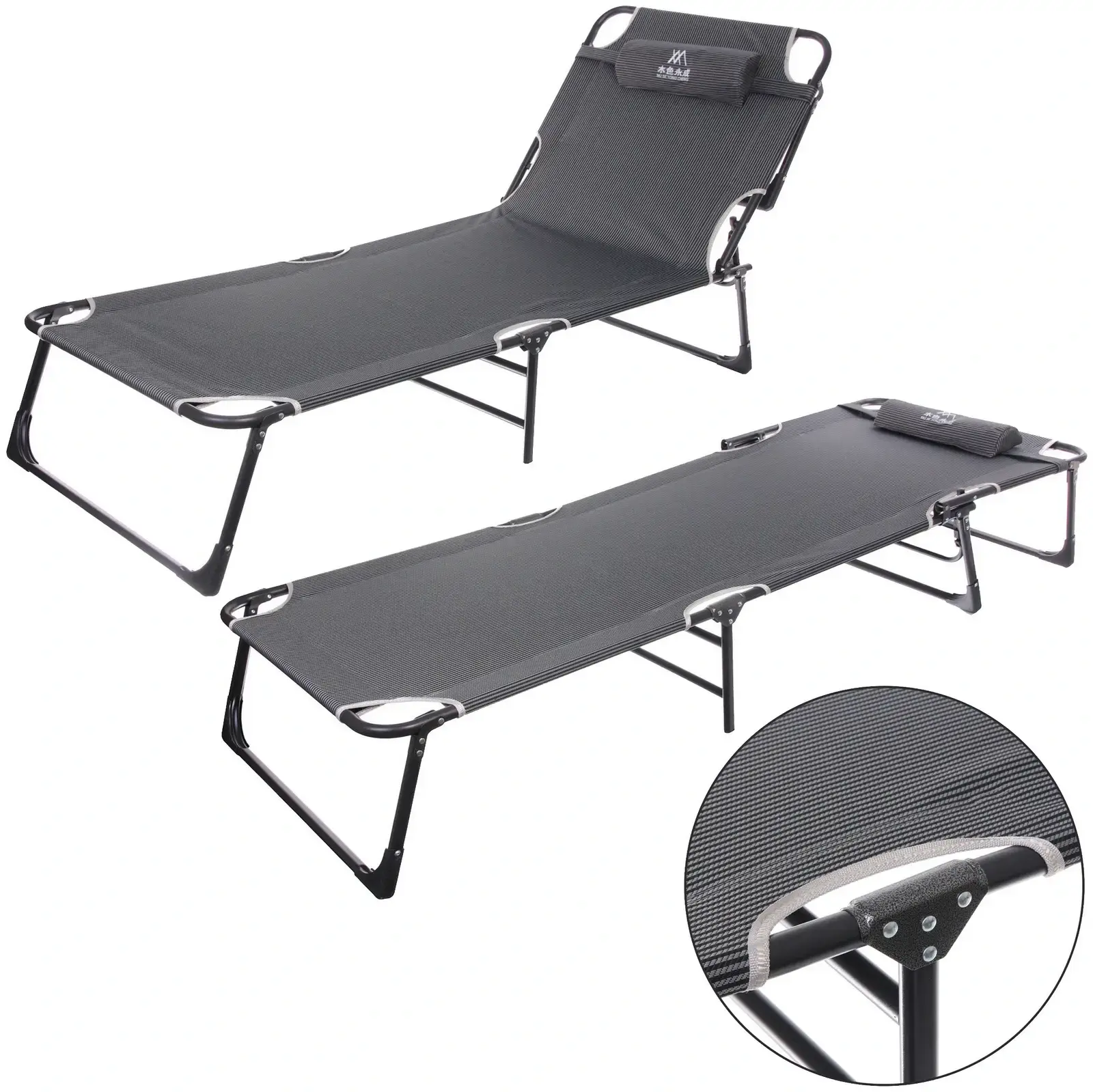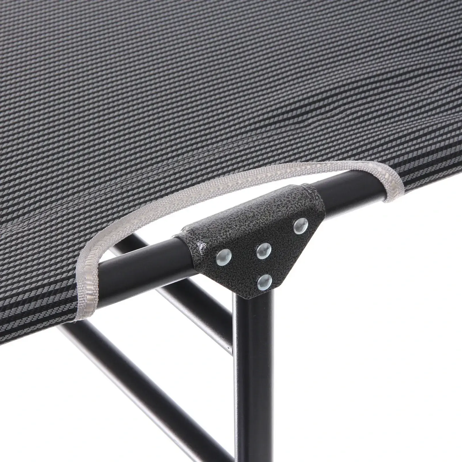 Эта раскладушка легко раскладывается и складывается, что делает её идеальной для кемпинга, пикников или просто отдыха на даче. Благодаря легкому металлическому каркасу и текстильной обивке, вы сможете без труда переносить её с места на место. Подголовник добавляет дополнительный комфорт, позволяя вам расслабиться и насладиться отдыхом.