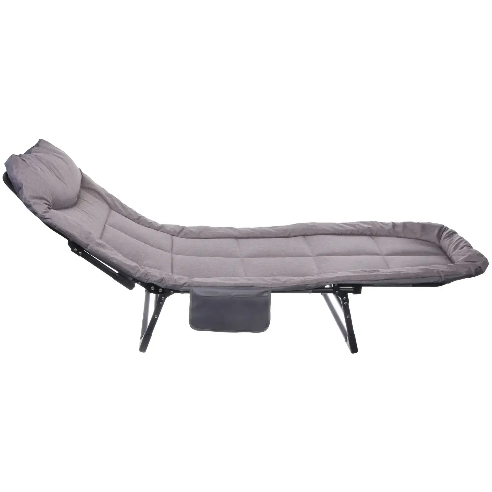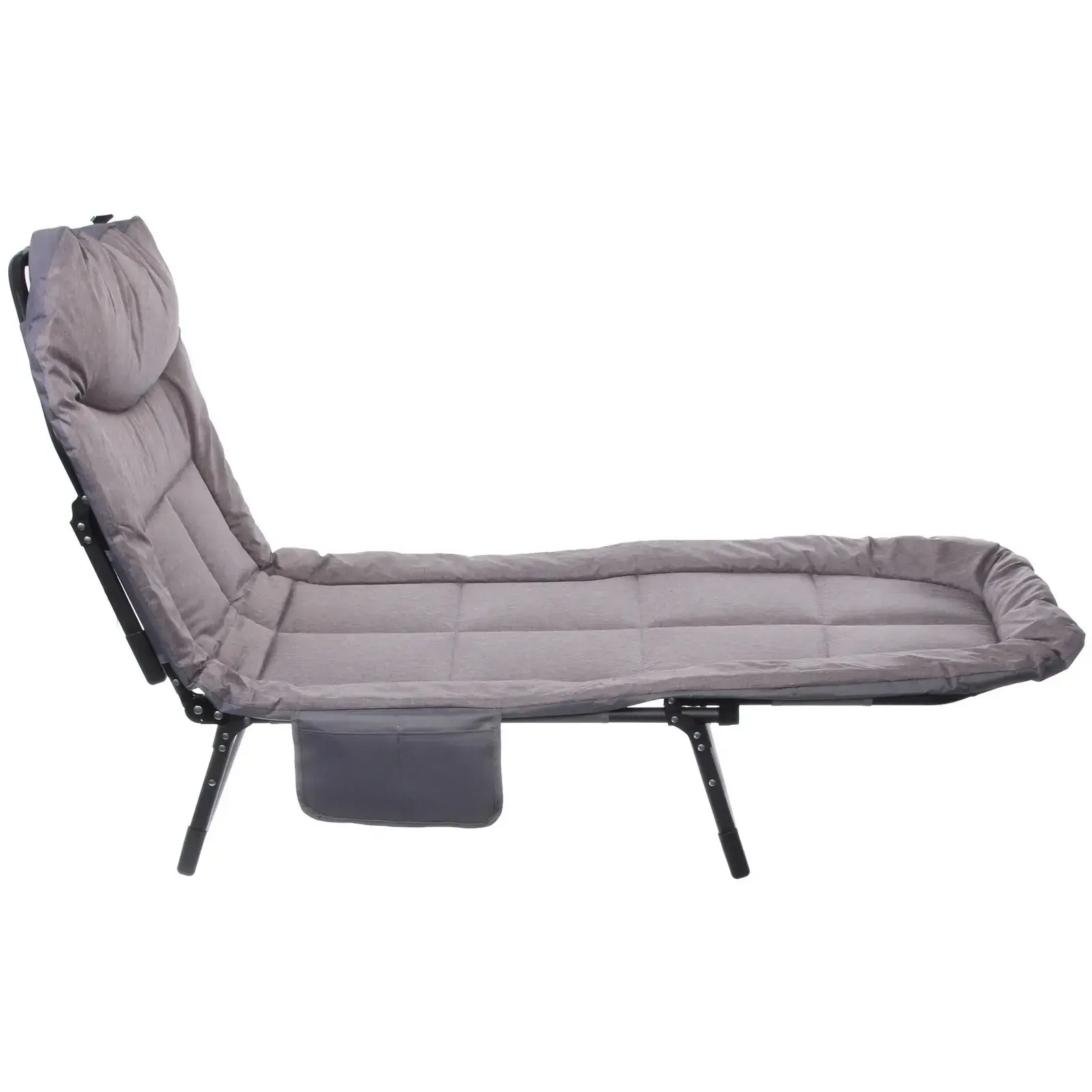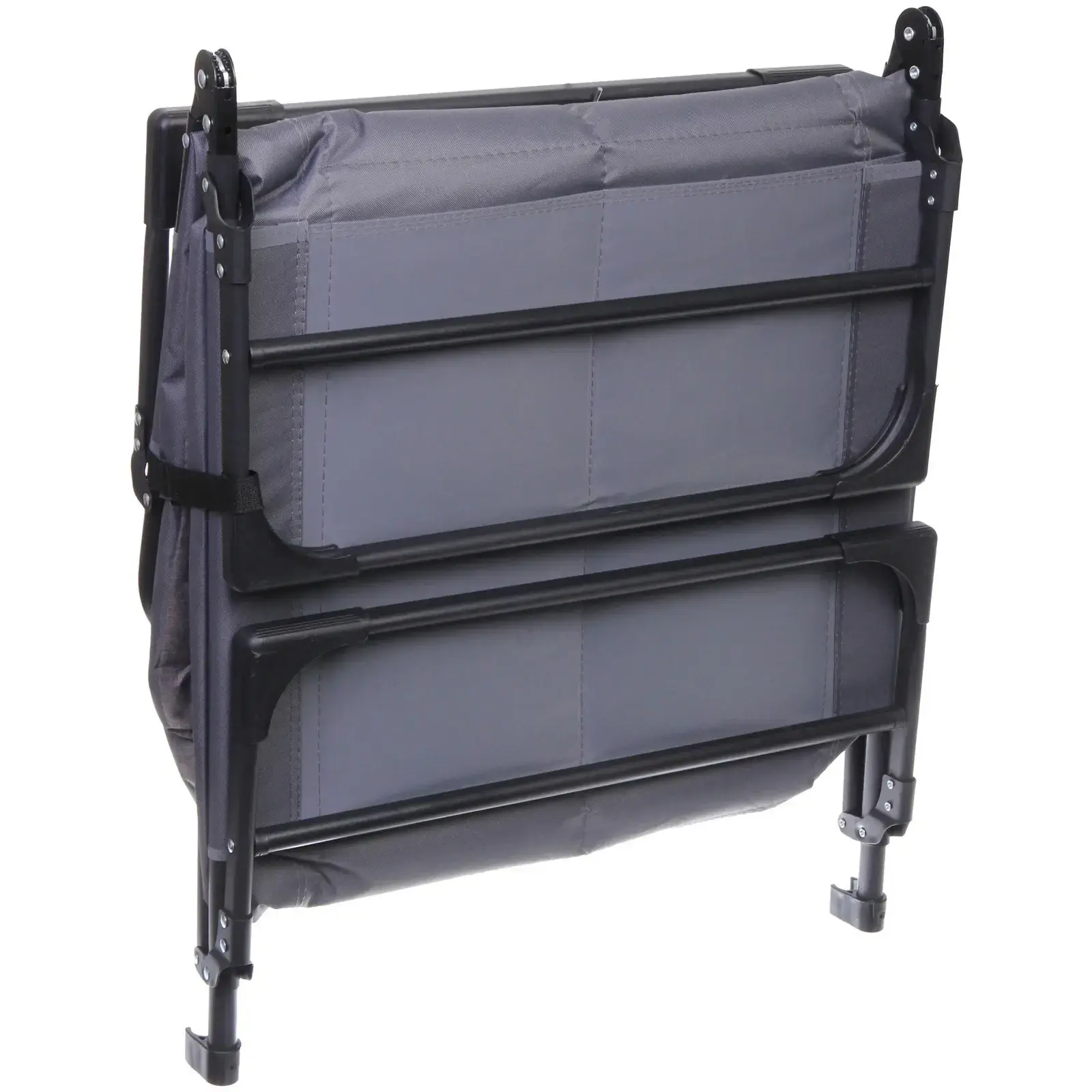 Раскладушка выполнена из качественных материалов: металлический каркас и полиэстер для обивки. Серый цвет делает её универсальной и стильной, подходящей под любой интерьер. Размеры в разложенном состоянии: 195 см в длину, 64 см в ширину и 30 см в высоту. Это идеальный выбор для тех, кто ищет надежное и комфортное место для отдыха на природе или в домашних условиях.
