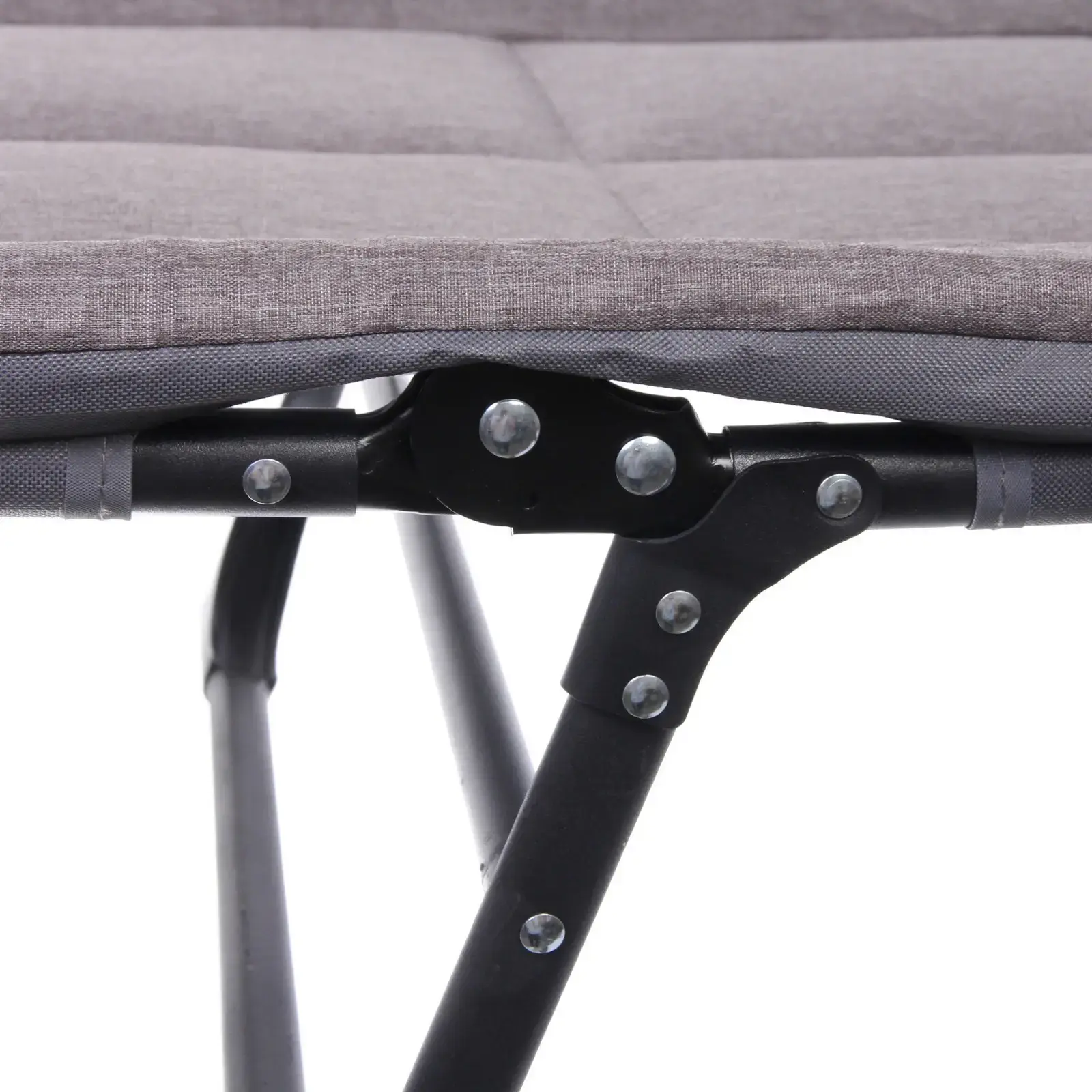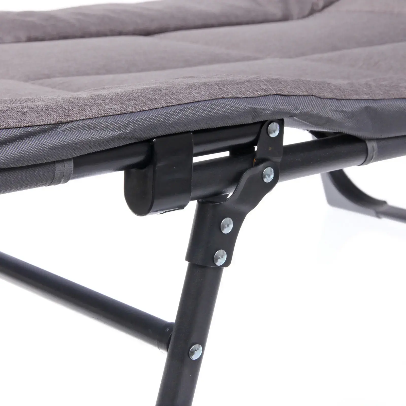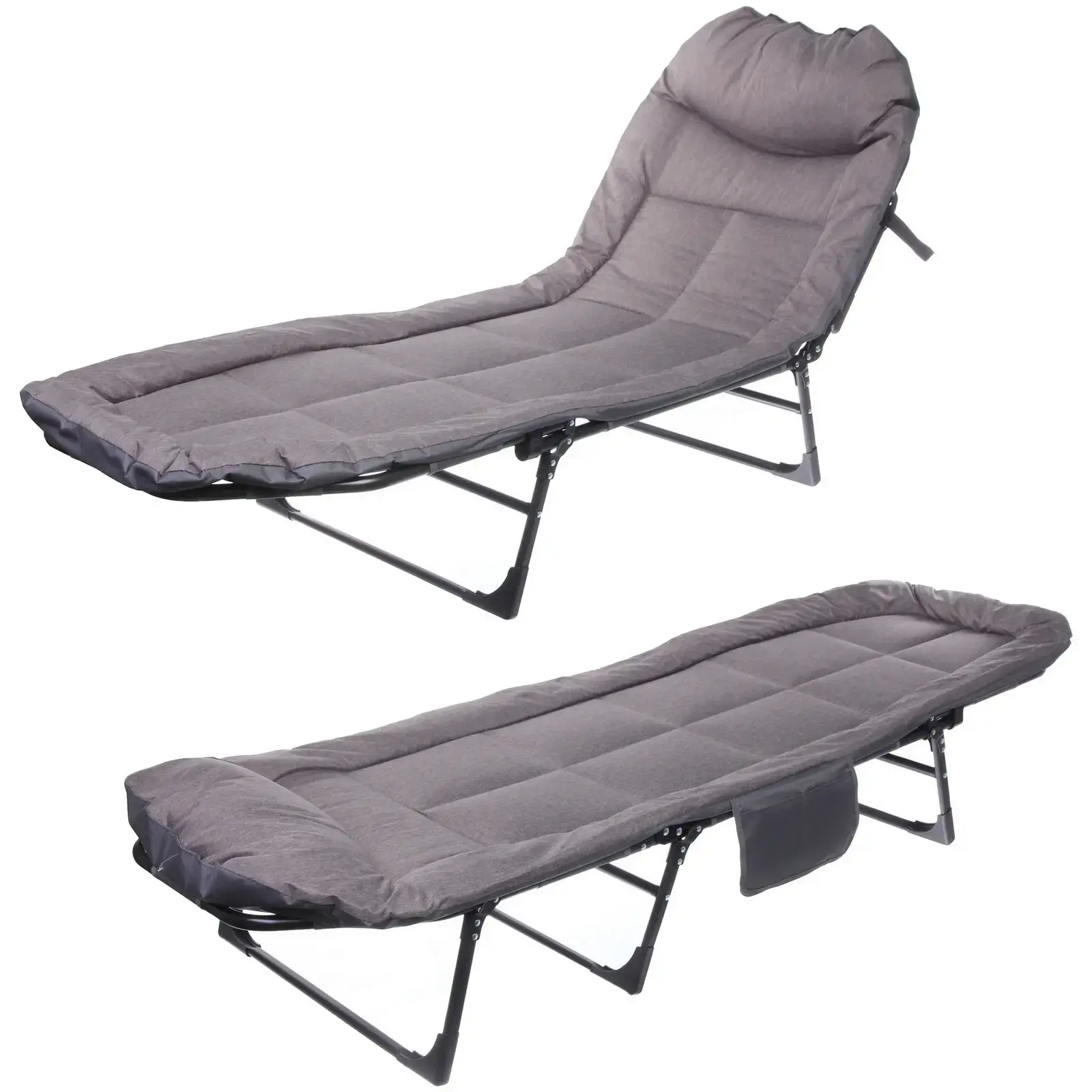 Раскладушка выполнена из качественных материалов: металлический каркас и полиэстер для обивки. Серый цвет делает её универсальной и стильной, подходящей под любой интерьер. Размеры в разложенном состоянии: 195 см в длину, 64 см в ширину и 30 см в высоту. Это идеальный выбор для тех, кто ищет надежное и комфортное место для отдыха на природе или в домашних условиях.