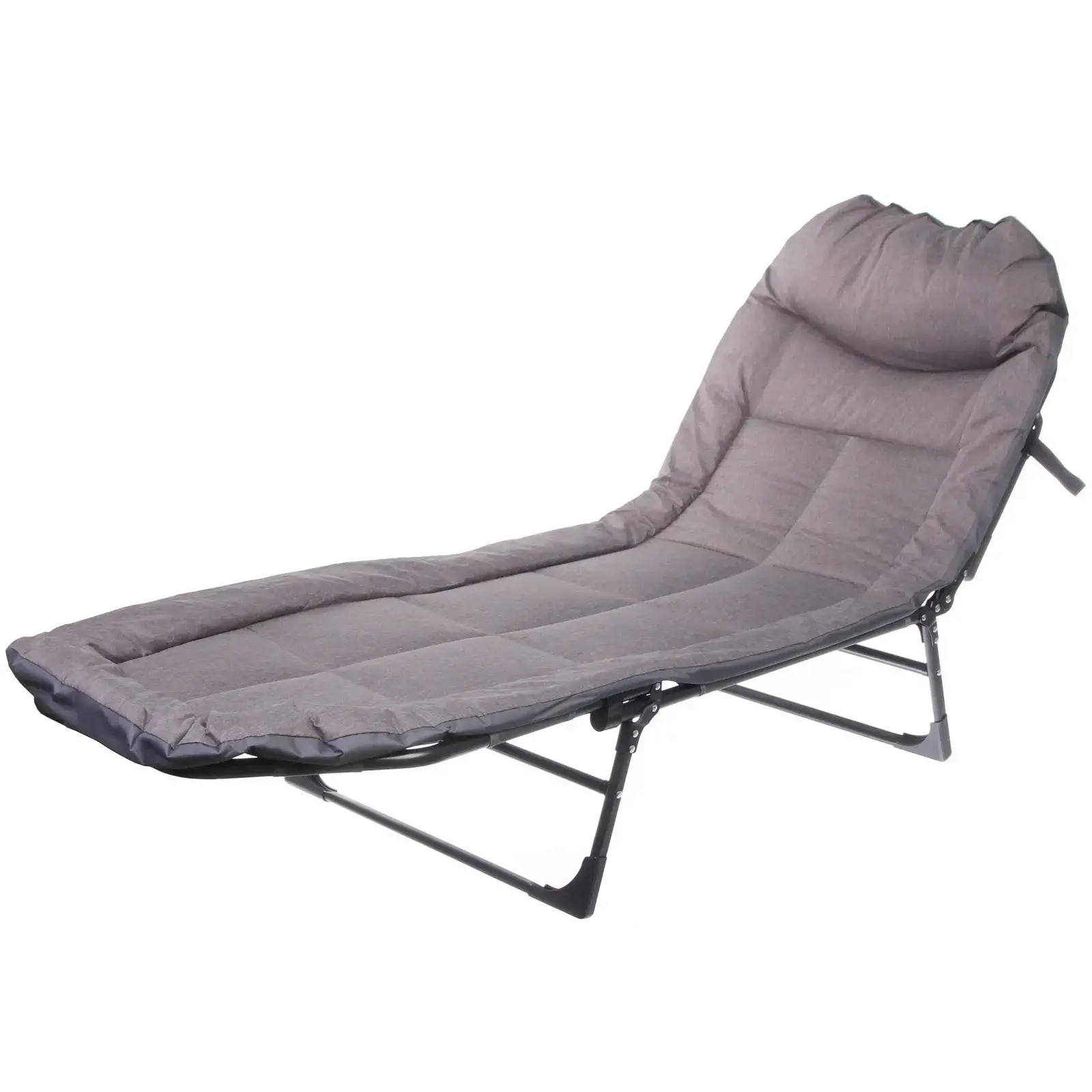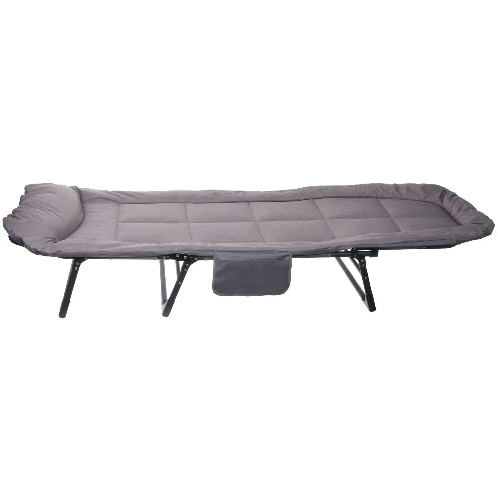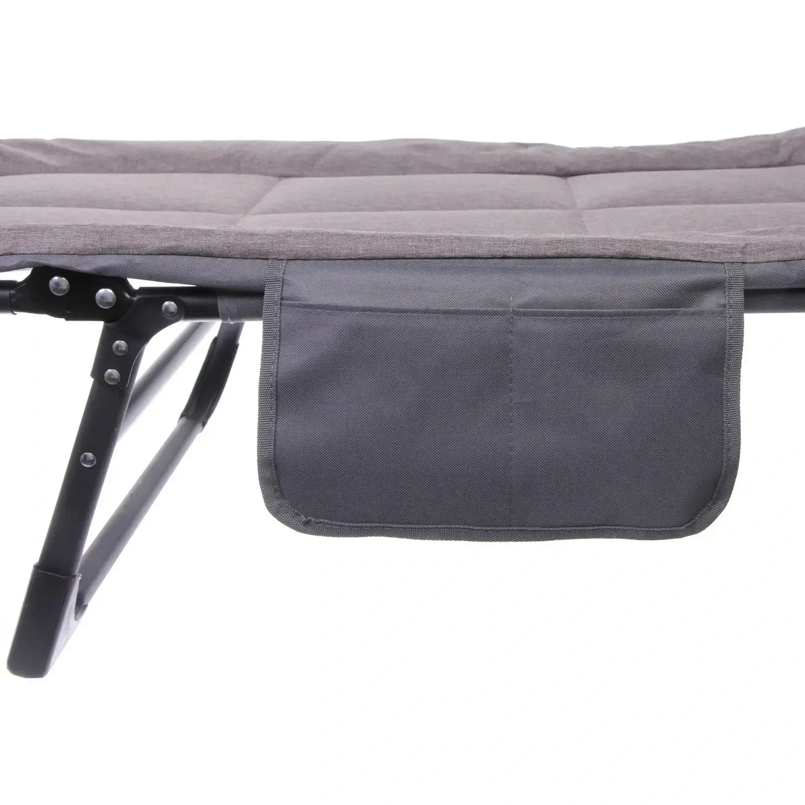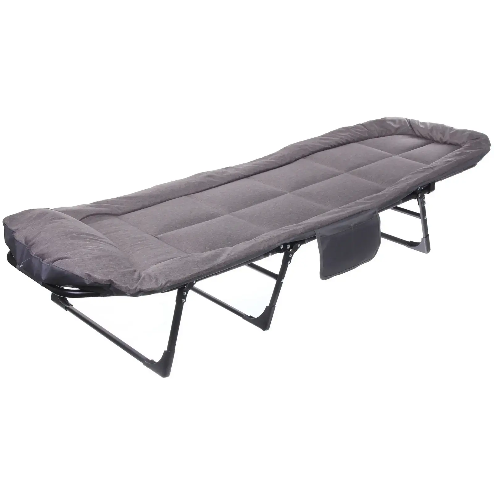 Эта раскладушка подходит для использования как на открытом воздухе, так и в помещении. Она идеально подходит для кемпинга, дачи или даже для гостей, которые остаются на ночь. Легкая и прочная конструкция позволяет быстро разложить и сложить изделие, что делает его удобным в использовании. Металлический каркас обеспечивает надежность и устойчивость, а мягкий матрас с текстильной обивкой добавляет комфорт.