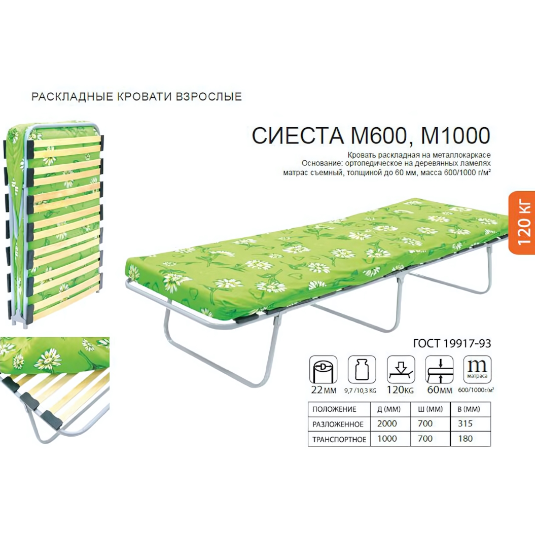 Раскладушка «Сиеста-М1000» металлическая до 120 кг, складной дизайн, съемный матрас 60 мм