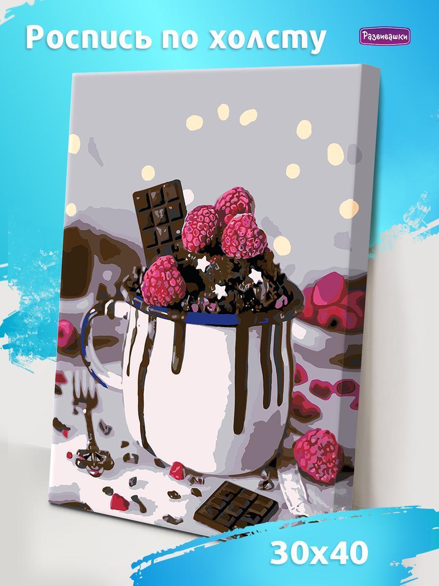 Набор для рисования "Малина в шоколаде", холст 40х30 см, акриловые краски, 2 кисти, Развивашки