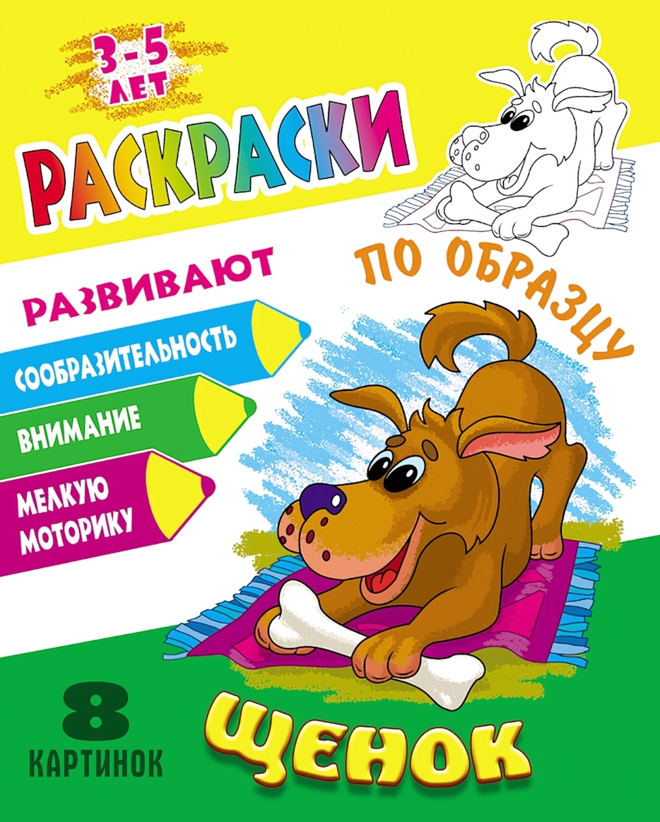 Раскраска по образцу А5+ "Щенок", 8 картинок, развитие внимания и моторики, 3-5 лет