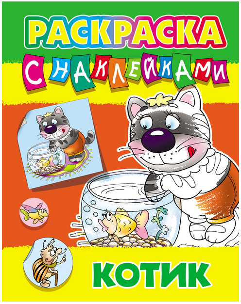 Яркая обложка с улыбающимся котиком сразу привлекает внимание детей. Крупные детали рисунков специально разработаны для первых попыток самостоятельного раскрашивания. Плотная бумага страниц выдерживает многократное исправление ошибок, а безопасные краски наклеек не оставляют следов на руках.