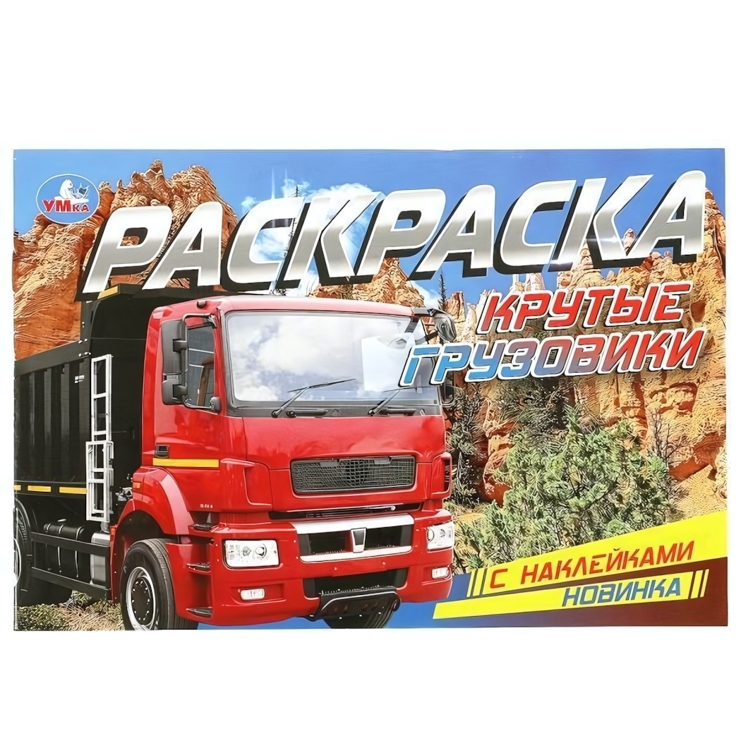 Погрузите ребенка в мир ярких красок и интересных фактов о грузовиках. Раскраска с наклейками 'Крутые грузовики' станет идеальным подарком для мальчиков младшего школьного возраста.