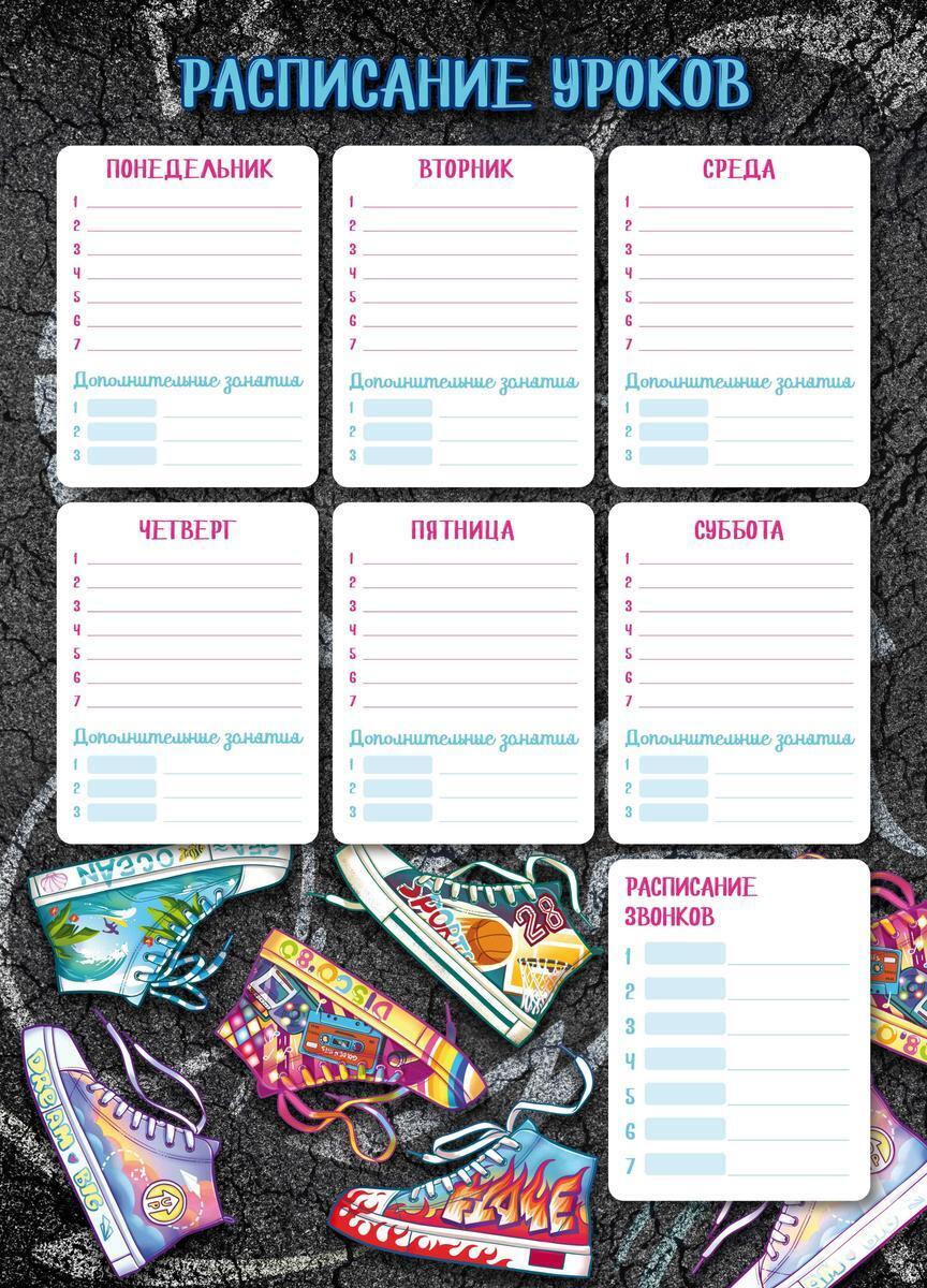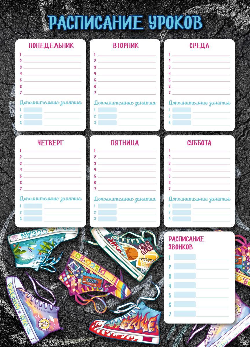 Расписание уроков А3 «Яркие кеды», мелованный картон 235 г/м², УФ-лак, форматирование под записи