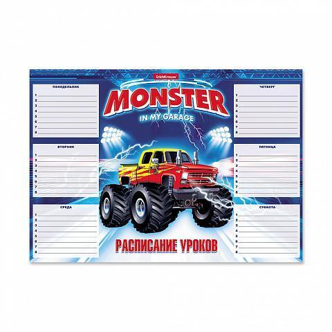 Расписание уроков А4 "Monster Car", мелованный картон 170 г/м², 6 дней, 8 строк, 210х297 мм