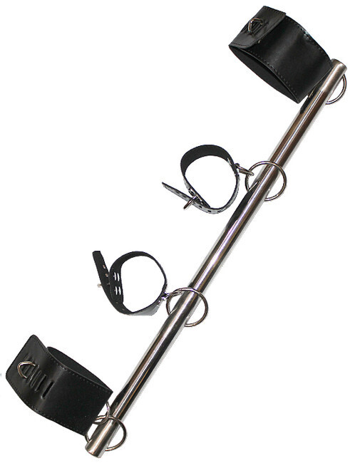 длина распорки 50 см., ширина наручников и оков на ноги 5.5 см.