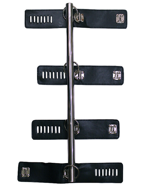 Длина распорки 50 см обеспечивает комфортное положение, а широкие ремни (5.5 см) равномерно распределяют давление. Контрастное сочетание серебряного металла и черной кожи выглядит стильно и элегантно.