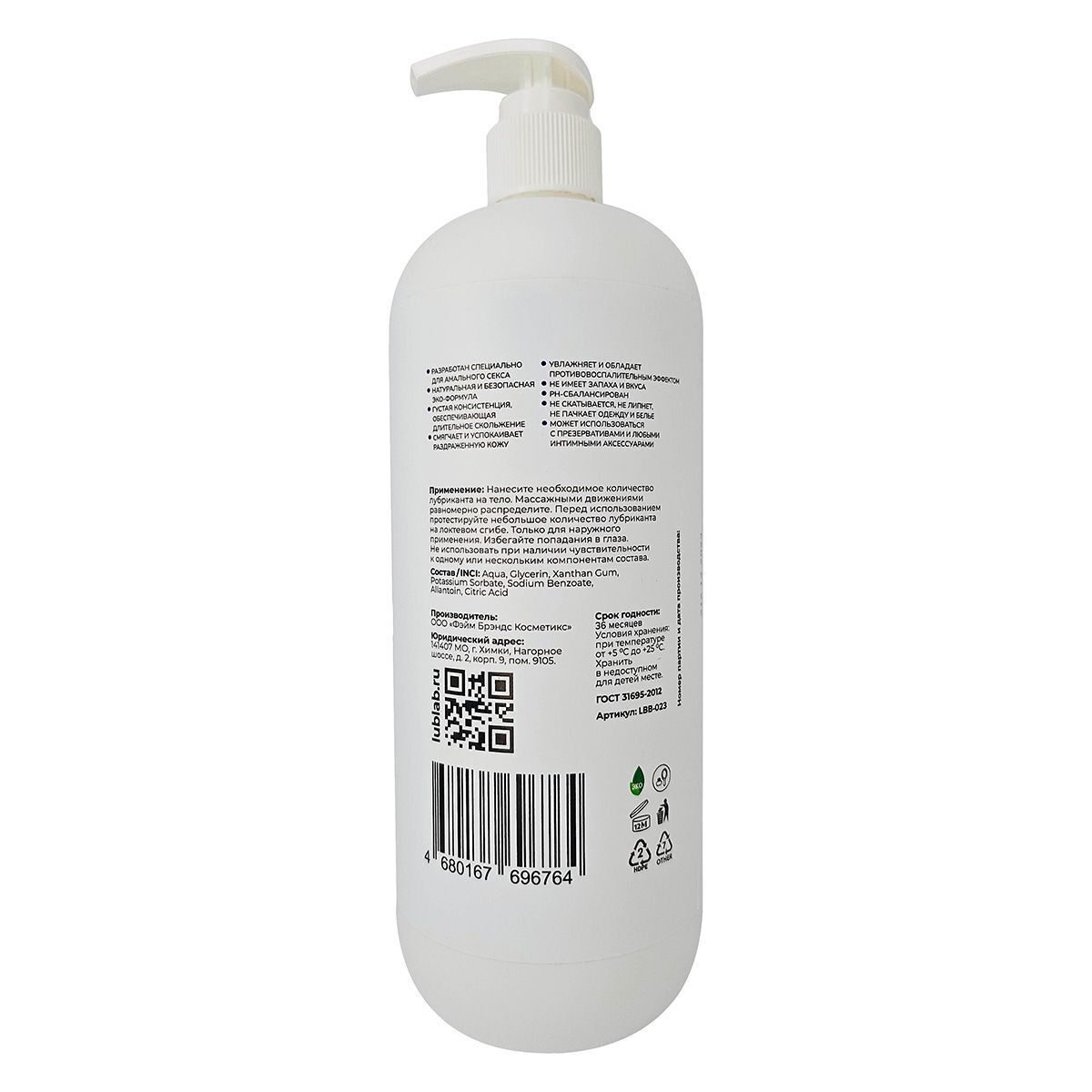 Анальный лубрикант 'LUBLab' с аллантоином, 1000 мл, расслабляющий эффект