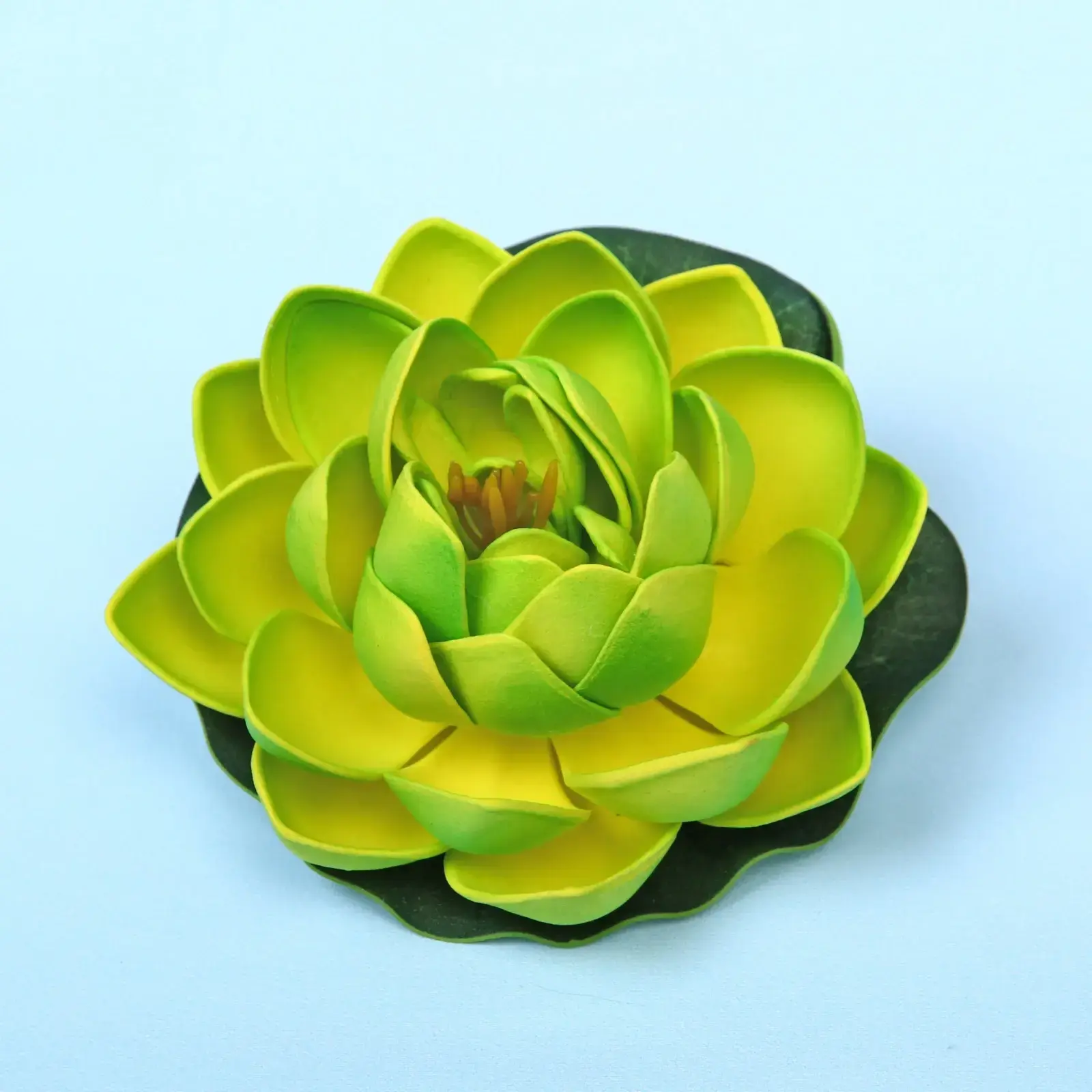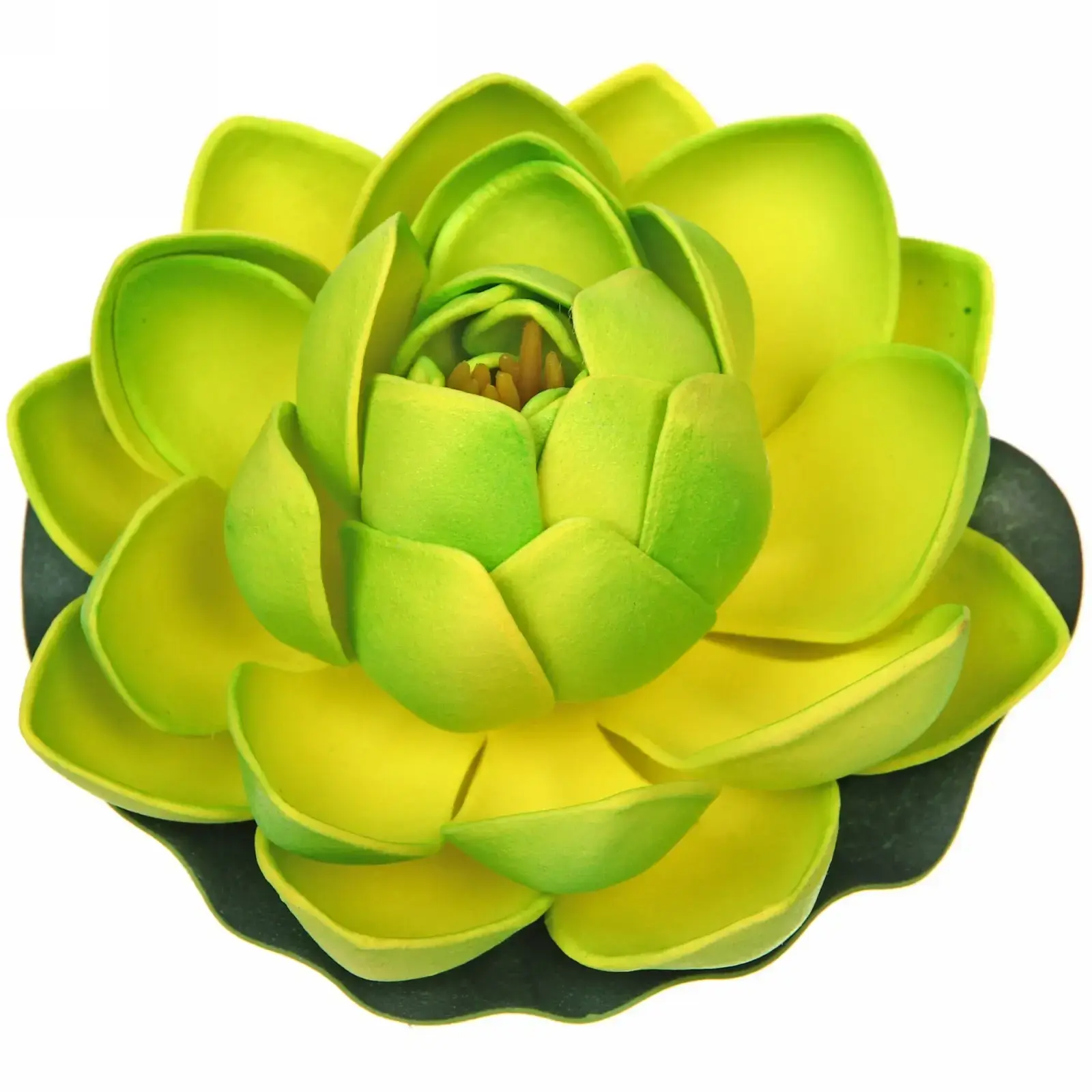 Цветок имеет диаметр 10 см и выполнен в ярко-зеленых оттенках с желтыми акцентами. Многослойные лепестки создают эффект реалистичности, а основание цветка имитирует натуральный лист. Искусственная лилия 'Кувшинка Розитта' станет отличным дополнением к вашему саду, придавая ему уникальный стиль и красоту.