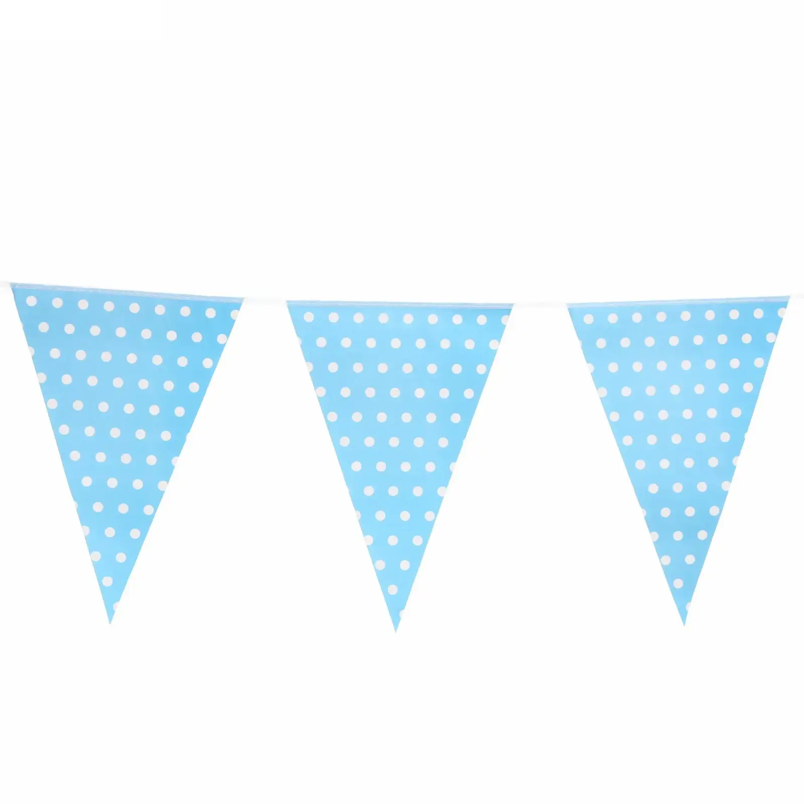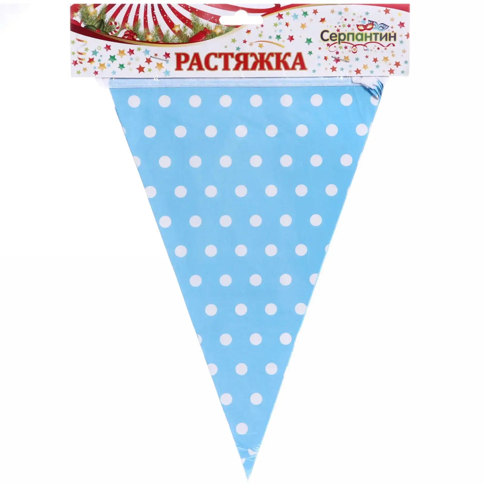 Выбирая растяжку «Голубой горошек», вы получаете не только красивое, но и практичное решение для оформления. Флажки имеют яркий голубой цвет с белыми горошками, что делает их универсальными для различных тем оформления. Они легко комбинируются с другими декорациями, позволяя вам создать уникальный стиль вашего праздника.