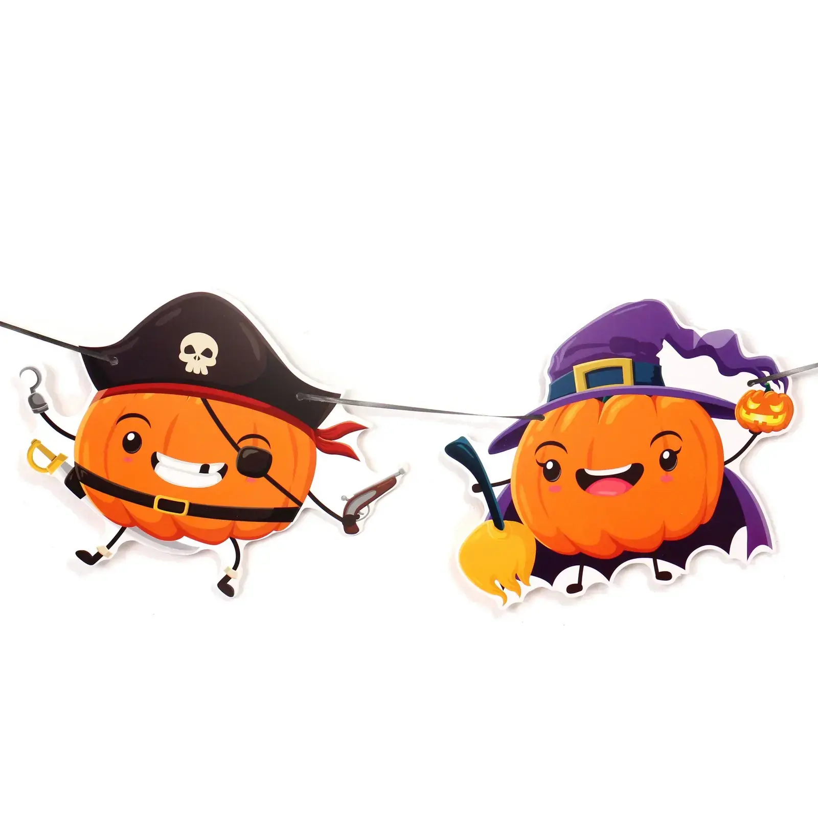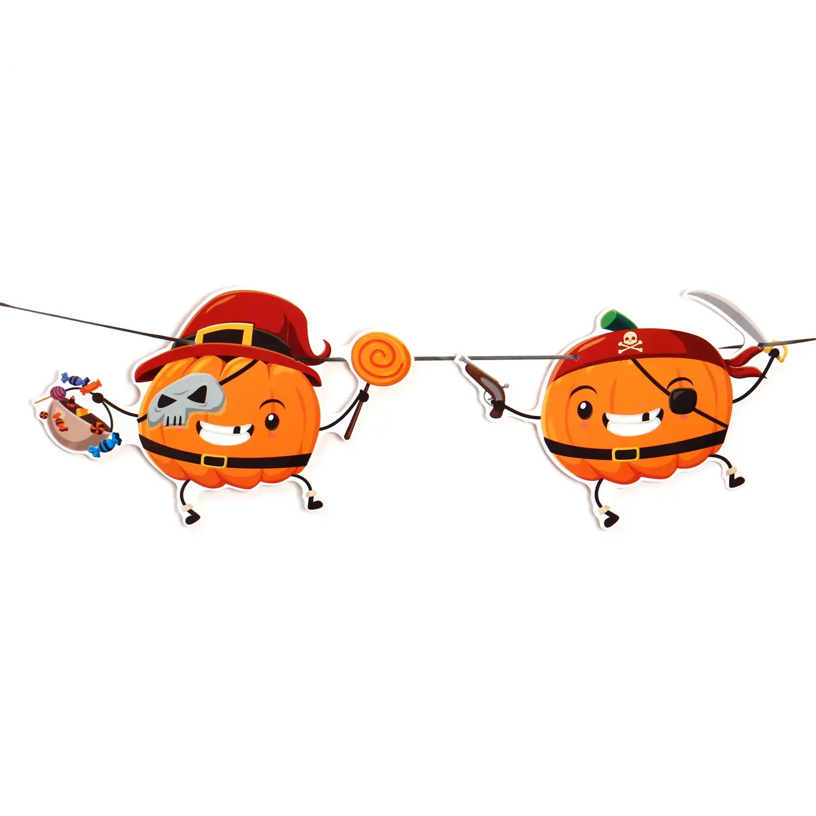 Эта яркая растяжка станет идеальным украшением для вашего праздника, добавляя веселья и игривости в любое помещение. С уникальными персонажами в виде тыкв, одетых в костюмы пиратов и ведьм, она привлечет внимание как детей, так и взрослых. Используйте растяжку для оформления стен, дверей или в качестве центрального элемента декора на столе.