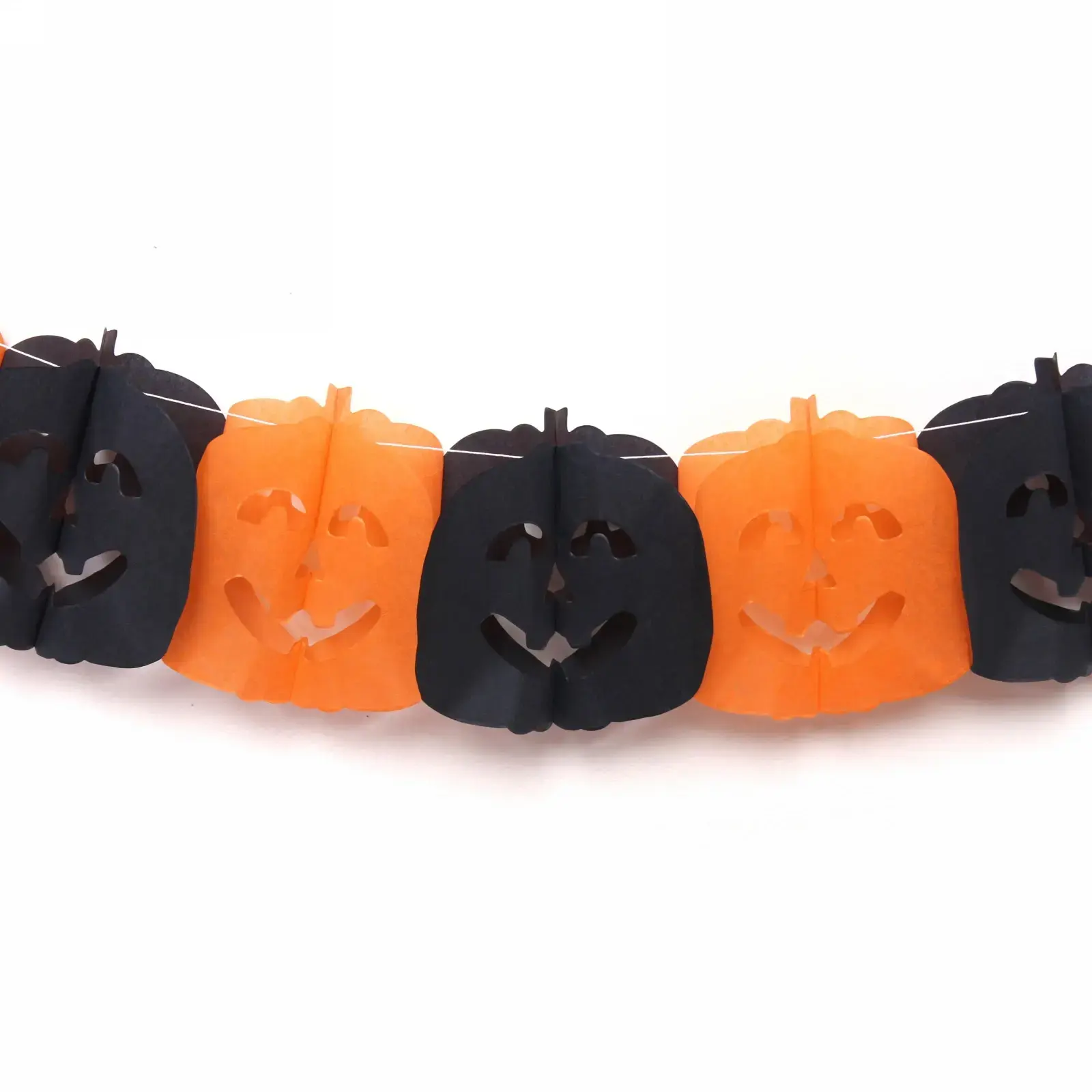 Гирлянда бумажная 'Зловещие тыквы', оранжево-черная, для Хэллоуина
