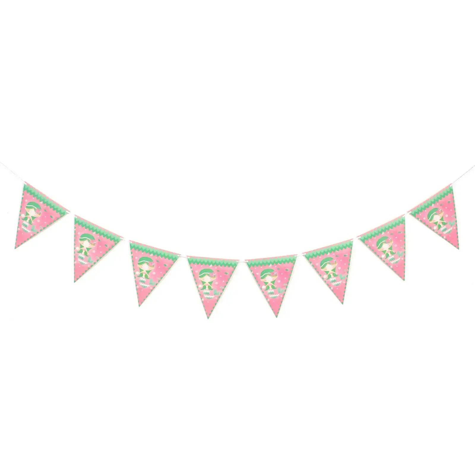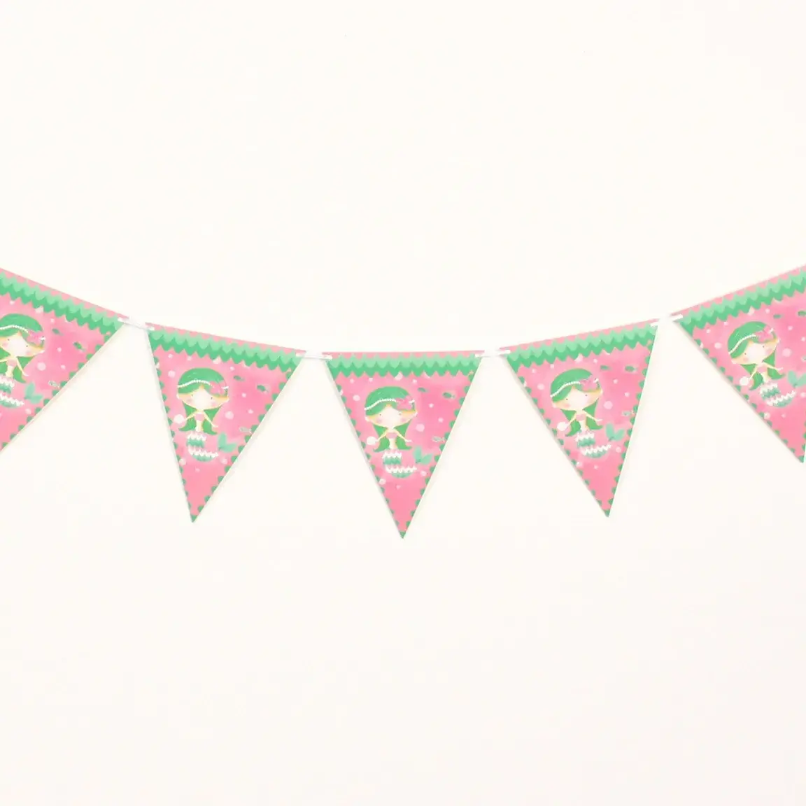 Гирлянда из флажков «Русалка» — это идеальное украшение для детских праздников и дней рождения. Яркие цвета и милые рисунки русалок создадут волшебную атмосферу и подарят радость вашим детям.