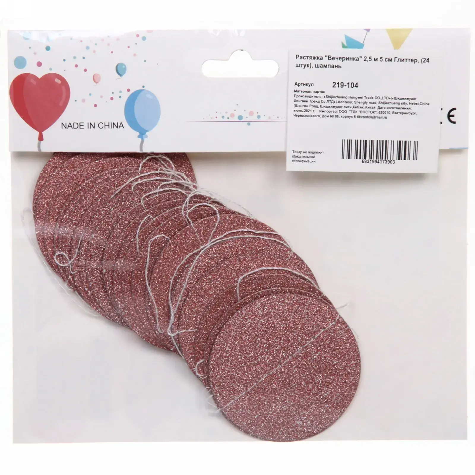 Растяжка 'Вечеринка' 2,5м, диаметр 5см, цвет шампань, с глиттером