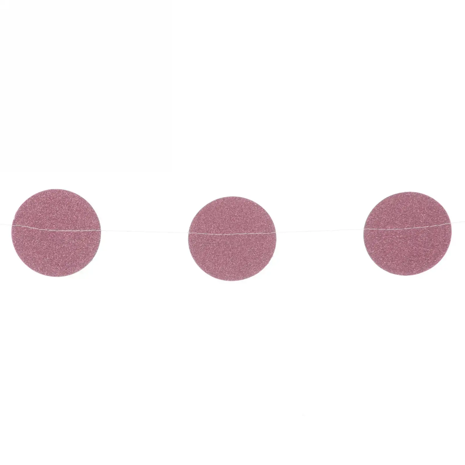 Важно: в упаковке содержится одна растяжка длиной 2,5 метра с 24 элементами диаметром 5 см каждый. Материал изготовления – картон с глиттерным покрытием.