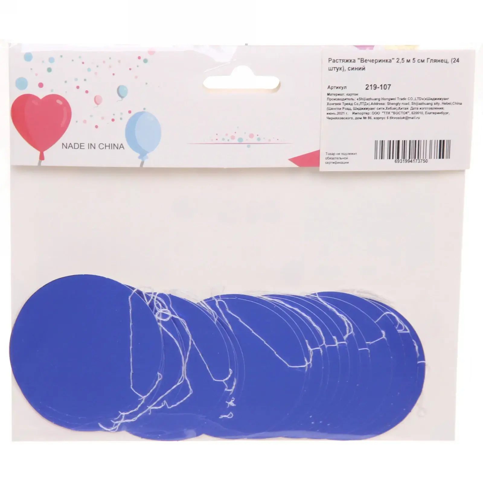 Растяжка 'Вечеринка' — это идеальное решение для украшения вашего дома или мероприятия. С её помощью вы сможете создать уникальную и яркую атмосферу, которая привлечет внимание гостей и создаст настроение праздника. Гирлянда состоит из 24 синих кругов, выполненных из глянцевого картона, что придаёт ей особый блеск и привлекательность.