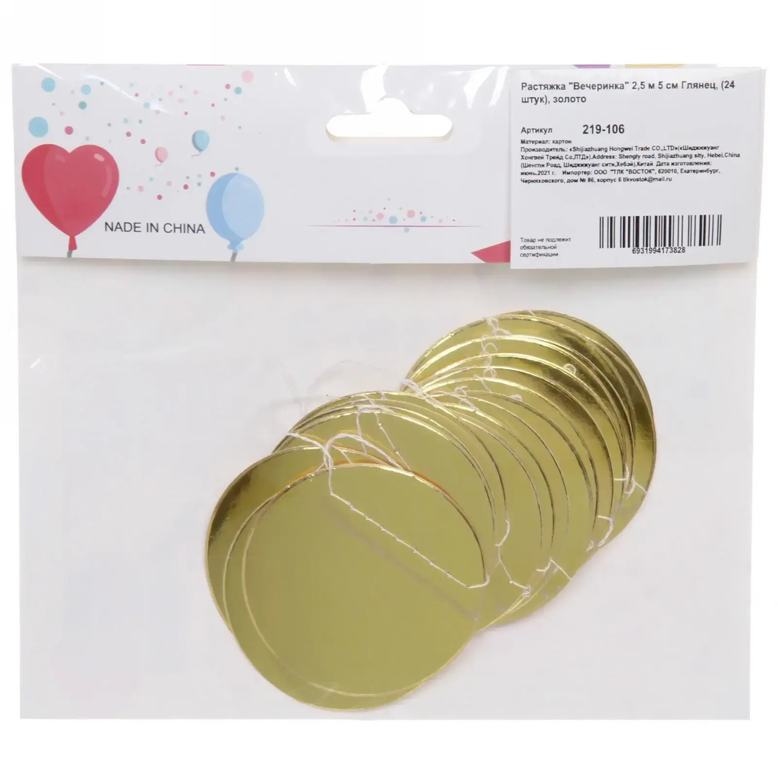 Растяжка «Вечеринка» 2,5 м, 24 золотых элемента 5 см, глянец, картон