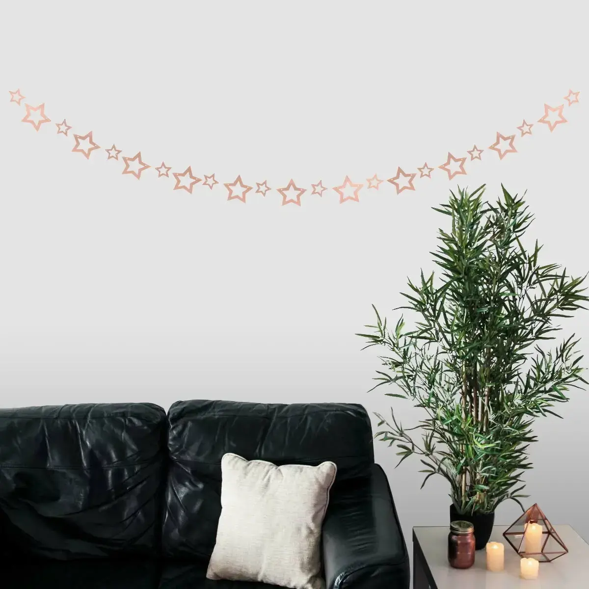 Гирлянда длиной 2,5 метра состоит из 24 звезд различного размера, что позволяет вам использовать её как для украшения стен, так и для создания оригинальных композиций на столах или в углах комнаты. Она идеально подходит для новогодних праздников, дней рождения и других торжеств. Легко крепится и снимается, что делает её удобной в использовании.
