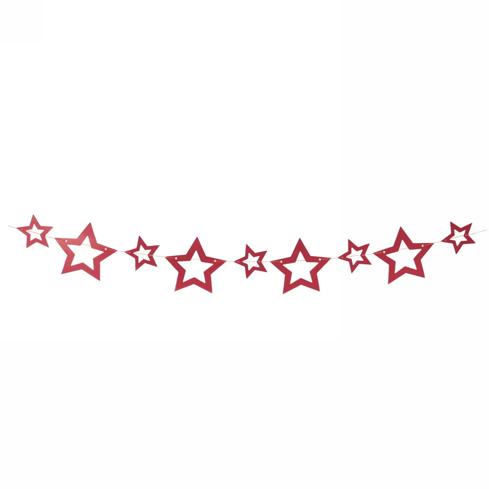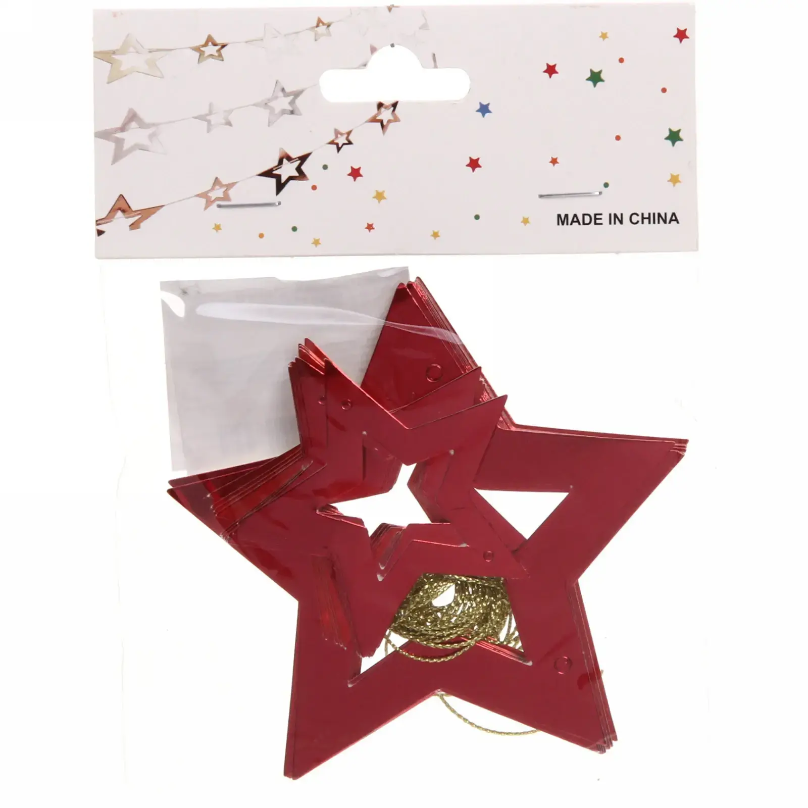 В комплекте 24 звезды размером 10 см каждая, которые соединены в единую гирлянду длиной 2,5 метра. Материал: качественный картон с глянцевым покрытием.